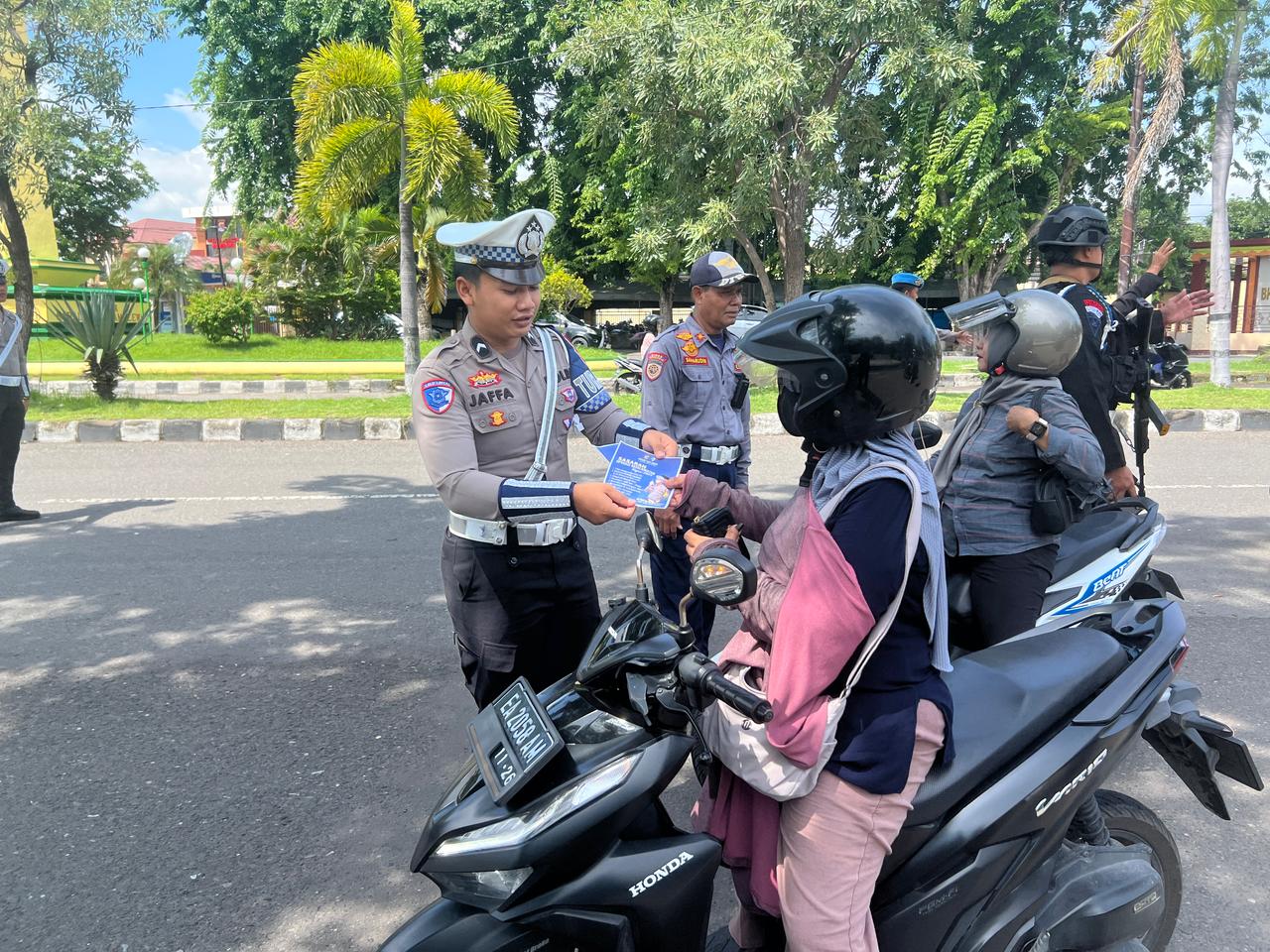 Dalam setiap kegiatan, pihaknya juga memberikan dan membagikan brosur himbauan tertib berlalu lintas kepada pengendara dengan tujuan agar para pengendara agar senantias mengutamakan keselamtan dalam berlalu lintas.