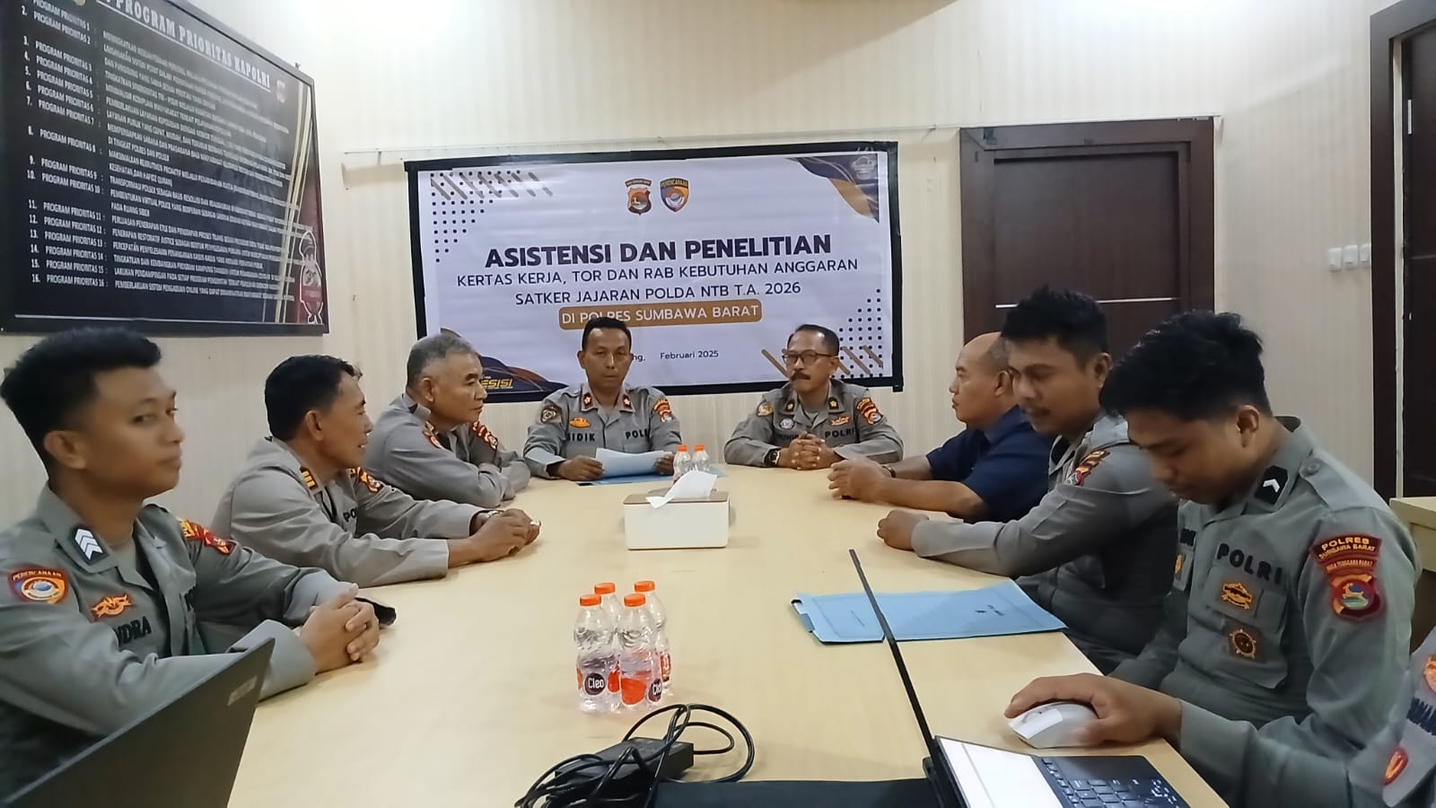 Sumbawa Barat – Dalam rangka memastikan efektivitas dan akurasi pengusulan kebutuhan anggaran tahun 2026, Sabtu (15/2/2025), Bagian Perencanaan Program dan Anggaran (Bag Renprogar) Biro Rena Polda NTB menggelar asistensi dan penelitian kertas kerja di Polres Sumbawa Barat.