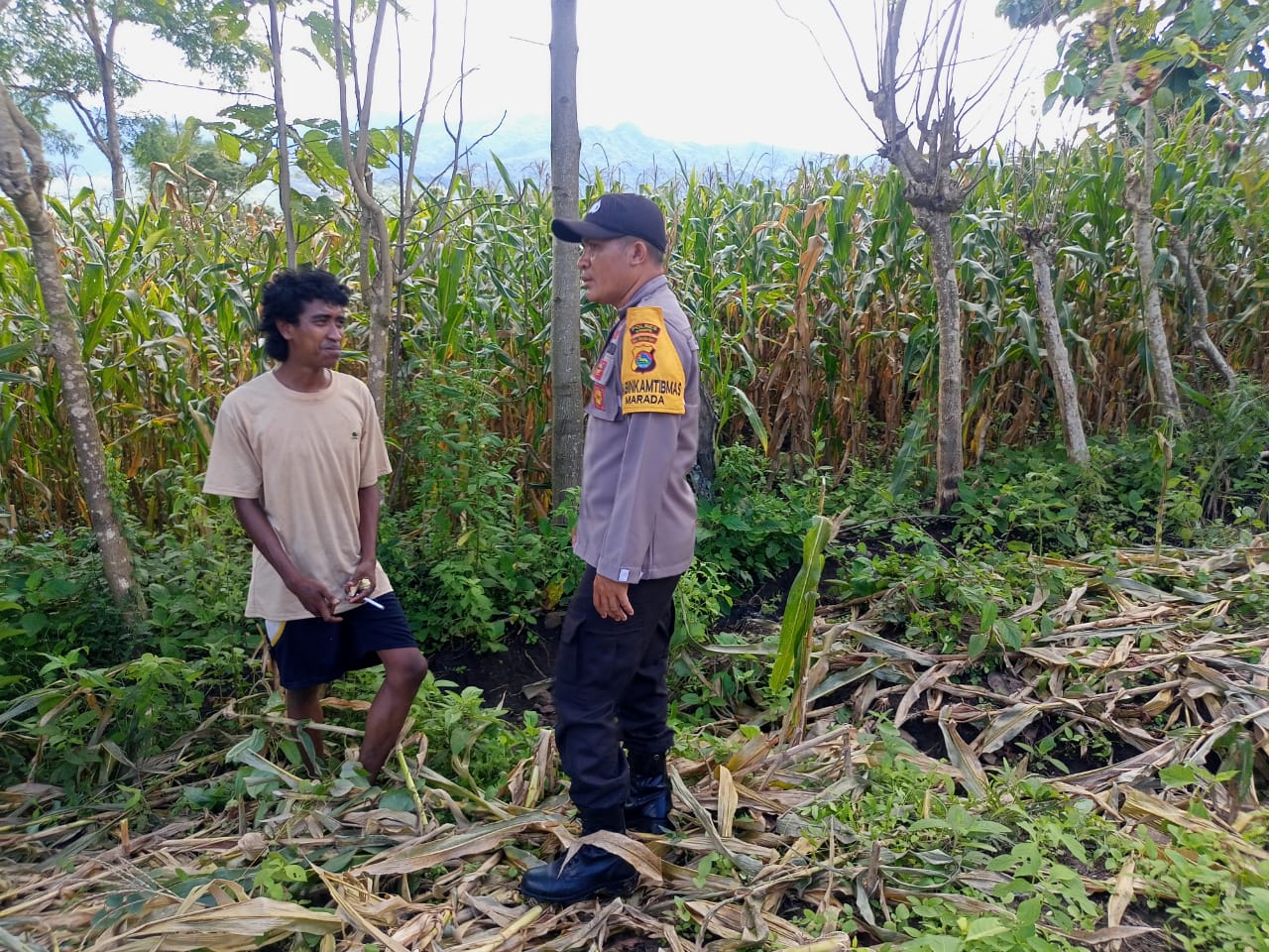 Dalam upaya mendukung Program Ketahanan Pangan Nasional Menuju Indonesia Emas 2045, Bhabinkamtibmas Desa Marada, Aipda Julkifli, melaksanakan pemantauan dan pendampingan pengolahan lahan pertanian milik warga binaan di Dusun Madawa, Desa Marada, Kecamatan Hu’u, Sabtu (1/3/2025).