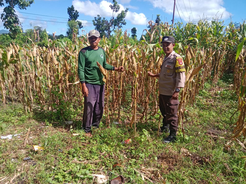 Dalam kegiatan tersebut, Aipda Erdan meninjau pertumbuhan jagung di lahan pertanian milik Nasarudin, sekaligus memberikan imbauan kepada warga agar memaksimalkan penggunaan lahan, baik lahan pertanian maupun pekarangan, untuk menanam tanaman produktif seperti jagung, padi, dan komoditas lainnya.