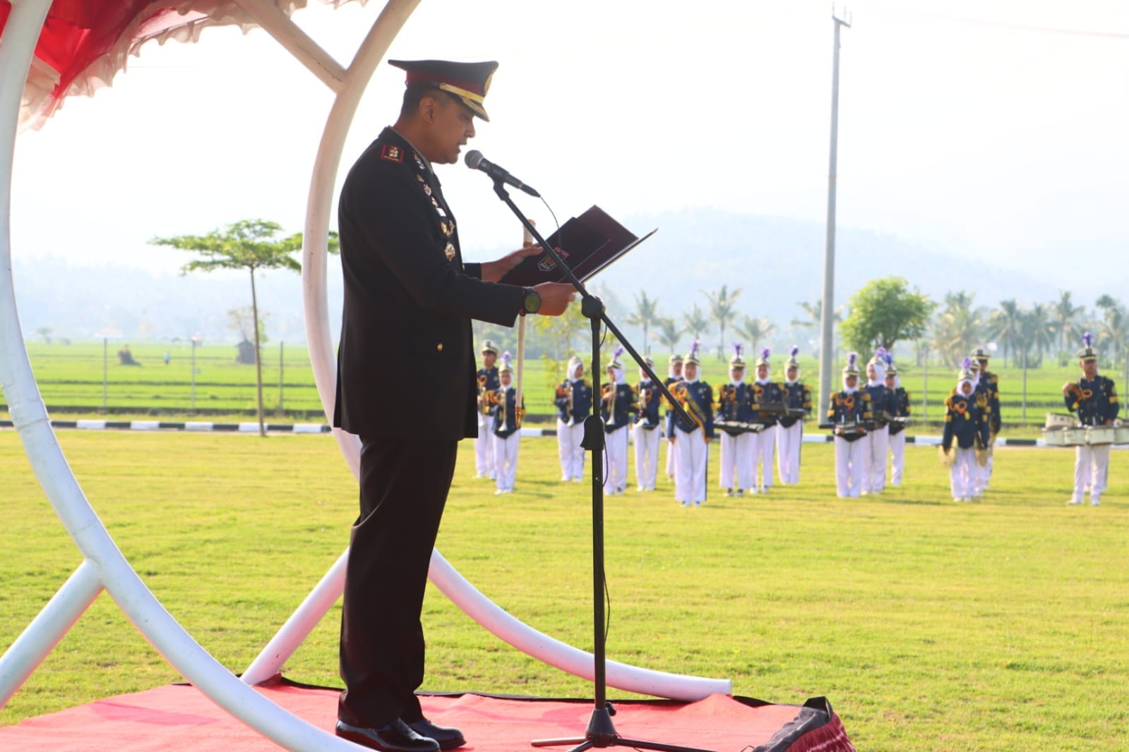 Lombok Utara, NTB – Kapolres Lombok Utara, AKBP Didik Putra Kuncoro, S.I.K., M.Si., menghadiri dan memimpin upacara bendera dalam rangka memperingati Hari Pahlawan yang dilaksanakan di Lapangan Kantor Bupati Lombok Utara. Upacara ini dihadiri oleh berbagai elemen masyarakat, termasuk pejabat pemerintah daerah, anggota TNI-Polri, ASN serta pelajar.
