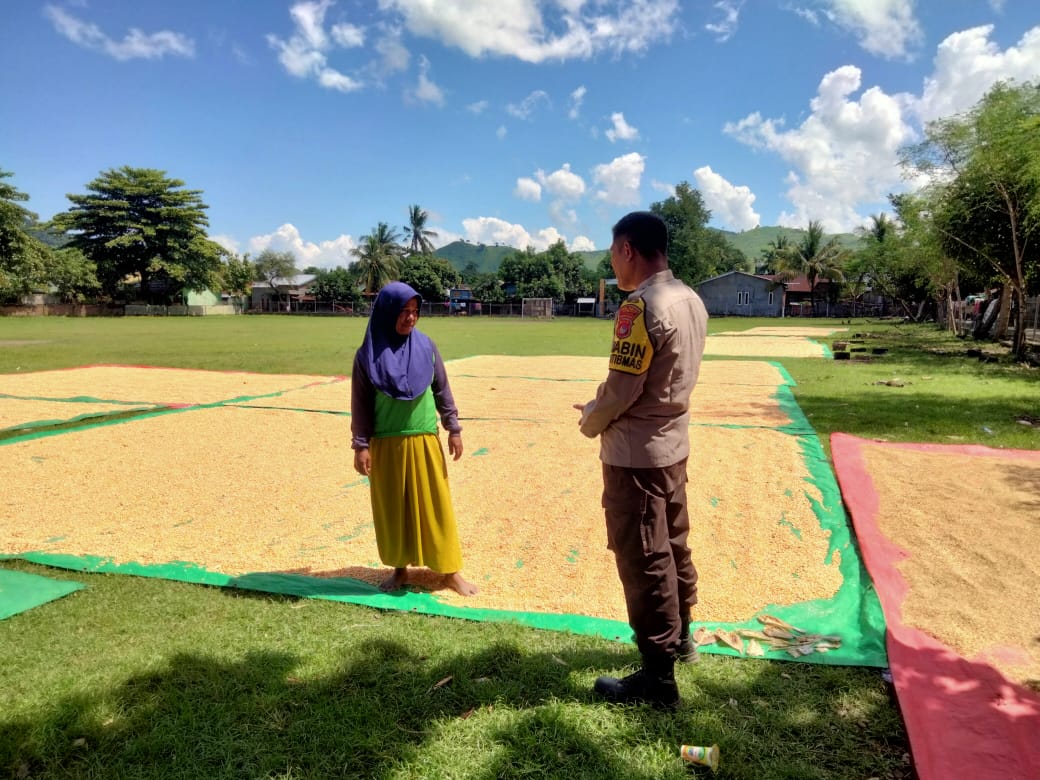 Dalam rangka mendukung Program Ketahanan Pangan Nasional Menuju Indonesia Emas 2045, Bhabinkamtibmas Desa Cempi Jaya, Bripka Ismail, melaksanakan pemantauan panen raya jagung milik Sdri. Hasanah di Dusun Langudi, Desa Cempi Jaya, Kecamatan Hu’u, Minggu (2/3/2025).