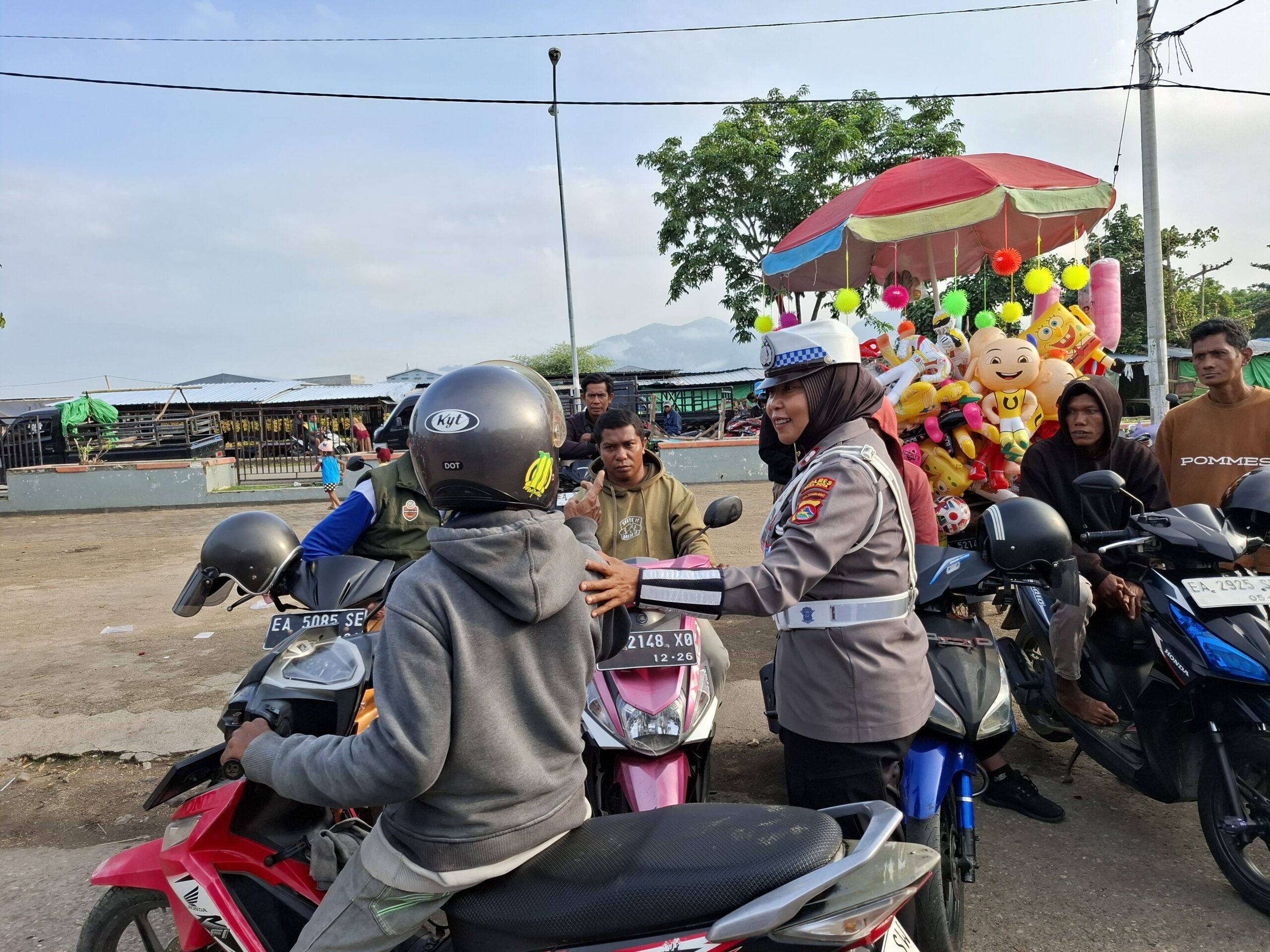 Kota Bima, NTB (4 Maret 2025) – Satuan Lalu Lintas (Sat Lantas) Polres Bima Kota melaksanakan kegiatan himbauan keselamatan berlalu lintas serta pembagian brosur kepada masyarakat dan komunitas ojek di Pasar Amahami, Kelurahan Dara, Kecamatan Rasanae Barat, Kota Bima, pada Selasa (4/3) pukul 09.00 Wita.