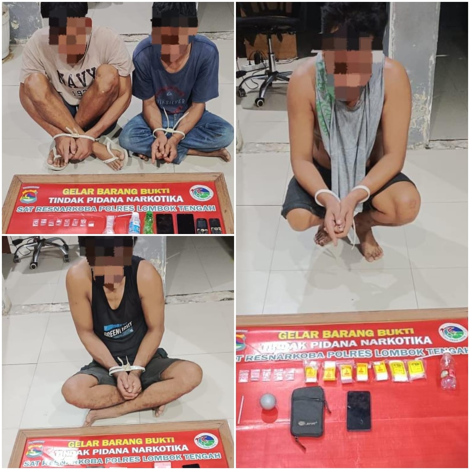 Lombok Tengah, (NTB) – Tim Opsnal Sat Resnarkoba dan Sat Reskrim berhasil mengamankan empat orang terduga pelaku penyalahgunaan Narkoba di Desa Bilelando Kecamatan Praya Timur.