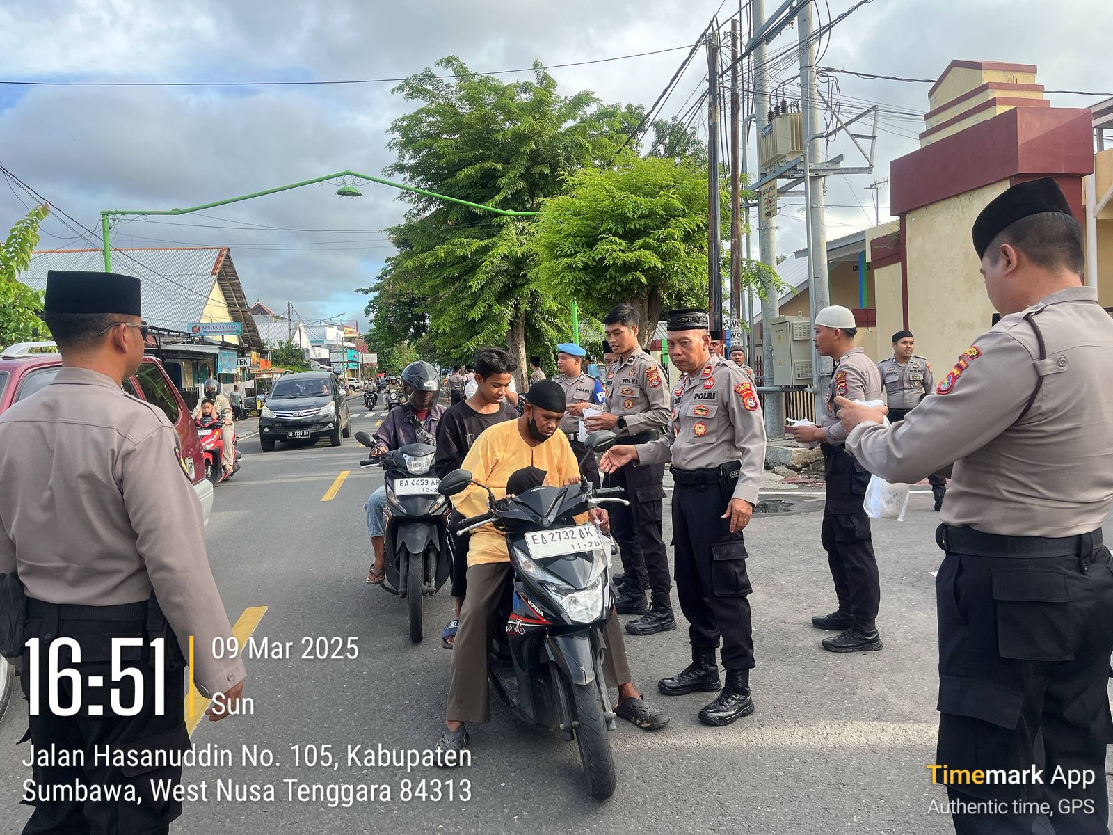 Sumbawa Besar-NTB, Personel Sat Samapta Polres Sumbawa melaksanakan kegiatan pembagian takjil gratis kepada pengendara dan masyarakat yang melintas di depan Mapolres Sumbawa pada Minggu (09/03/25). Kegiatan ini dipimpin langsung oleh Kasat Samapta, IPTU Tahir Lantu.