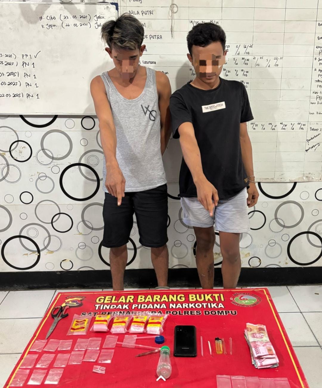 Dalam operasi tersebut, polisi mengamankan dua pria yang diketahui berinisial S (33) dan RD (24). Berdasarkan hasil penyelidikan, S diduga sebagai pengedar, sementara RD merupakan pengguna aktif yang kerap berada di lokasi tersebut.