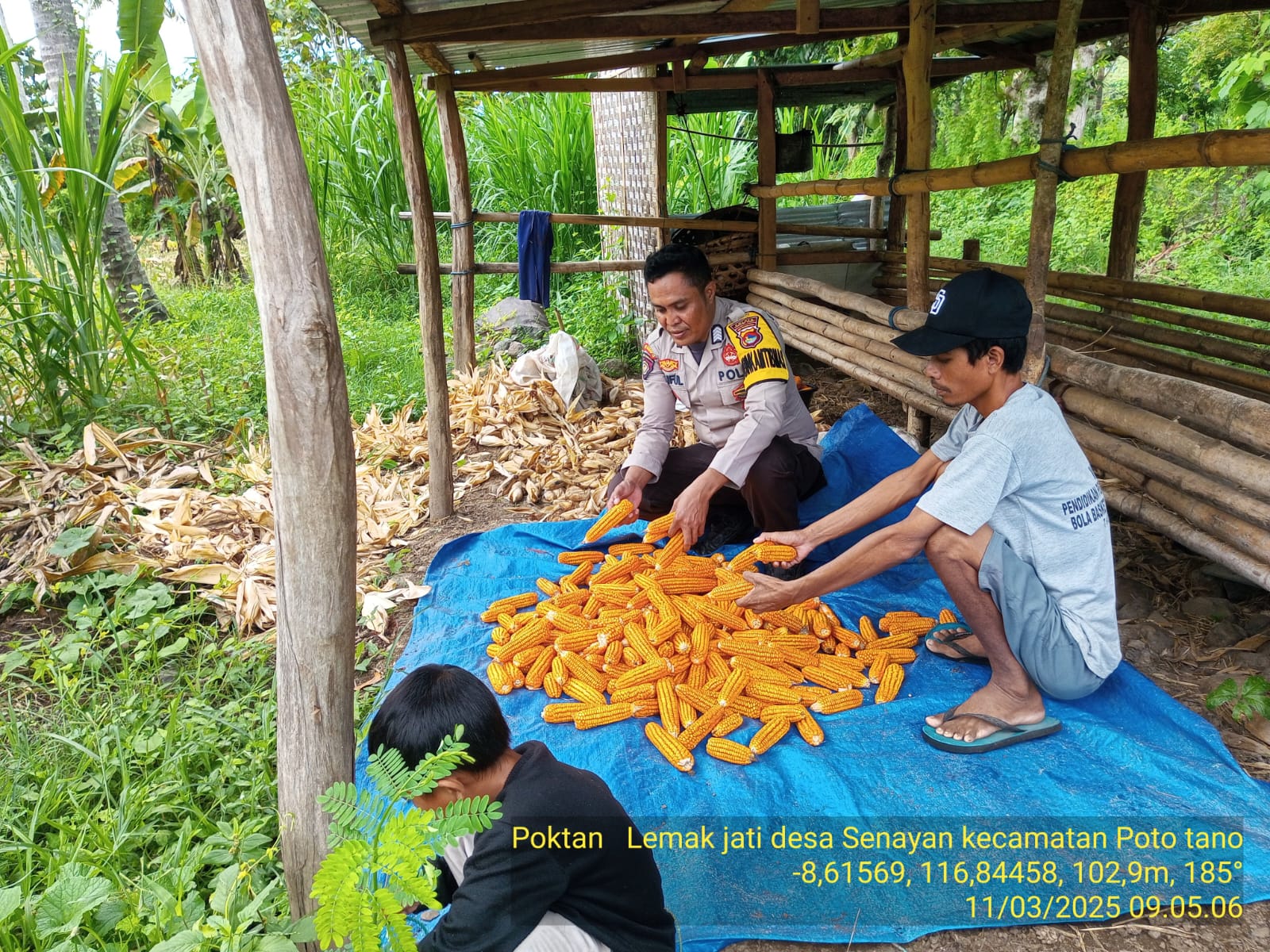 Sumbawa Barat, NTB – Dalam rangka mendukung ketahanan pangan di wilayahnya, Bhabinkamtibmas Desa Senayan, bersama dengan Penyuluh Pertanian Lapangan (PPL) Desa Senayan, melaksanakan pendampingan panen jagung di Kelompok Tani Alam Subur II dan Kelompok Tani Lemak Jati, yang terletak di Dusun Ai Olat Senayan Bawah, Desa Senayan, Kecamatan Poto Tano, Kabupaten Sumbawa Barat, pada Selasa, 11 Maret 2025.