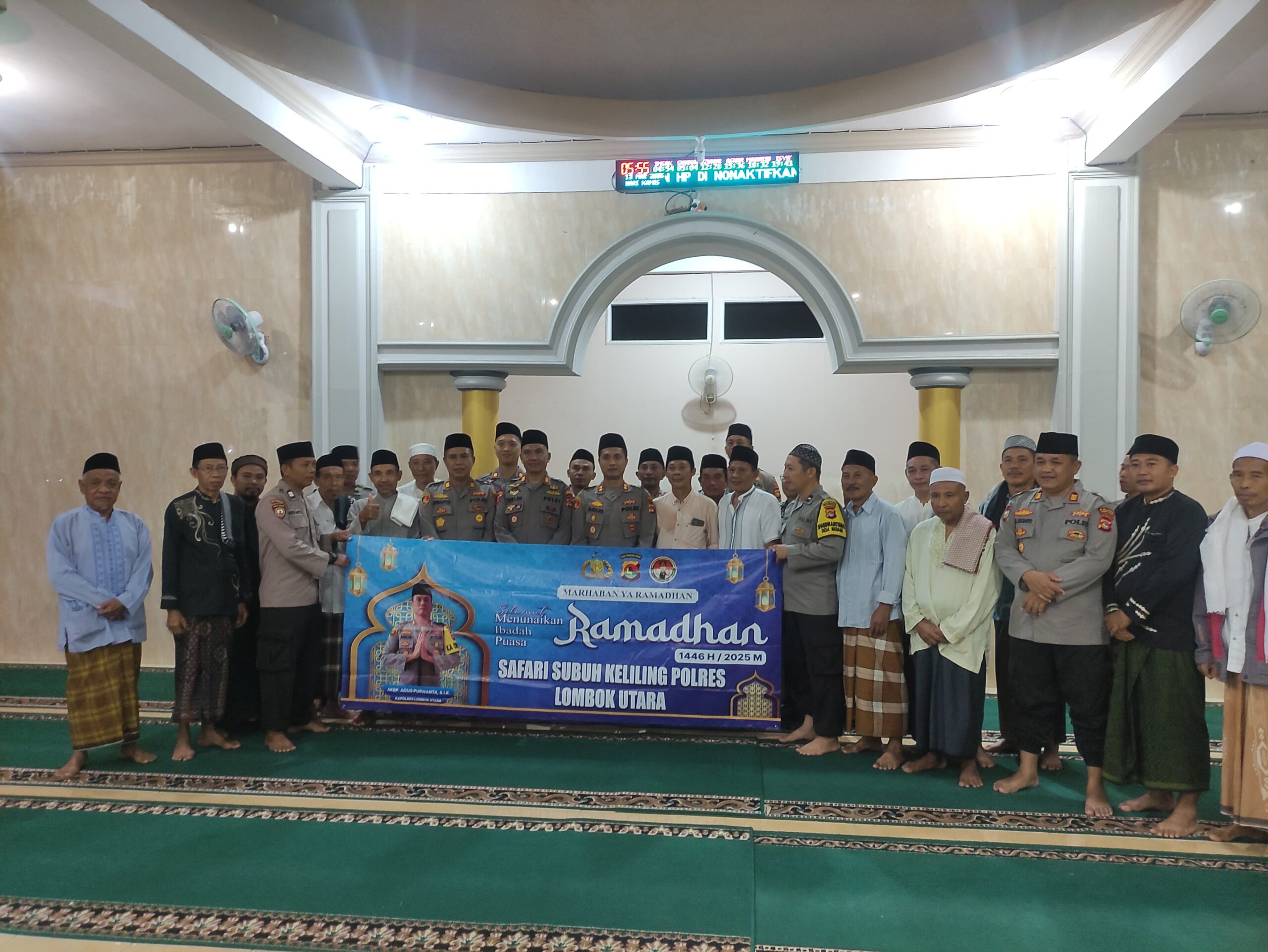 Lombok Utara, NTB – Kapolres Lombok Utara AKBP Agus Purwanta, S.I.K. di dampingi PJU Polres Lombok Utara melaksanakan Safari Subuh Keliling bertempat di Masjid Qomarul Huda Desa Medana Kecamatan Tanjung KLU, kamis 13/3/2025.