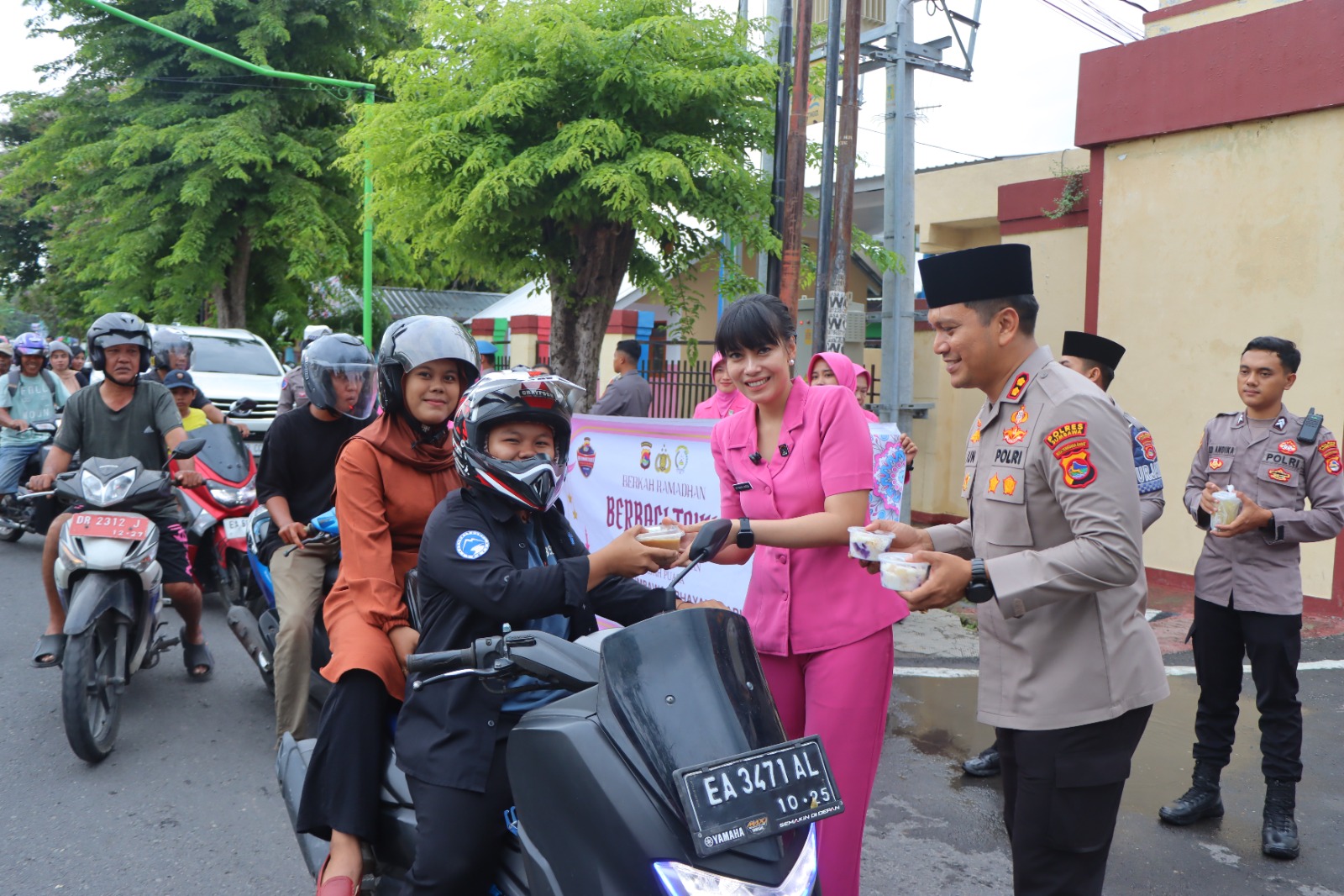 Kapolres Sumbawa bersama Ketua Bhayangkari dan anggota Bhayangkari turun langsung membagikan takjil kepada para pengendara yang melintas. Kegiatan ini bertujuan untuk membantu masyarakat, khususnya umat Muslim, dalam menjalankan ibadah puasa dengan lebih mudah dan penuh kebahagiaan.