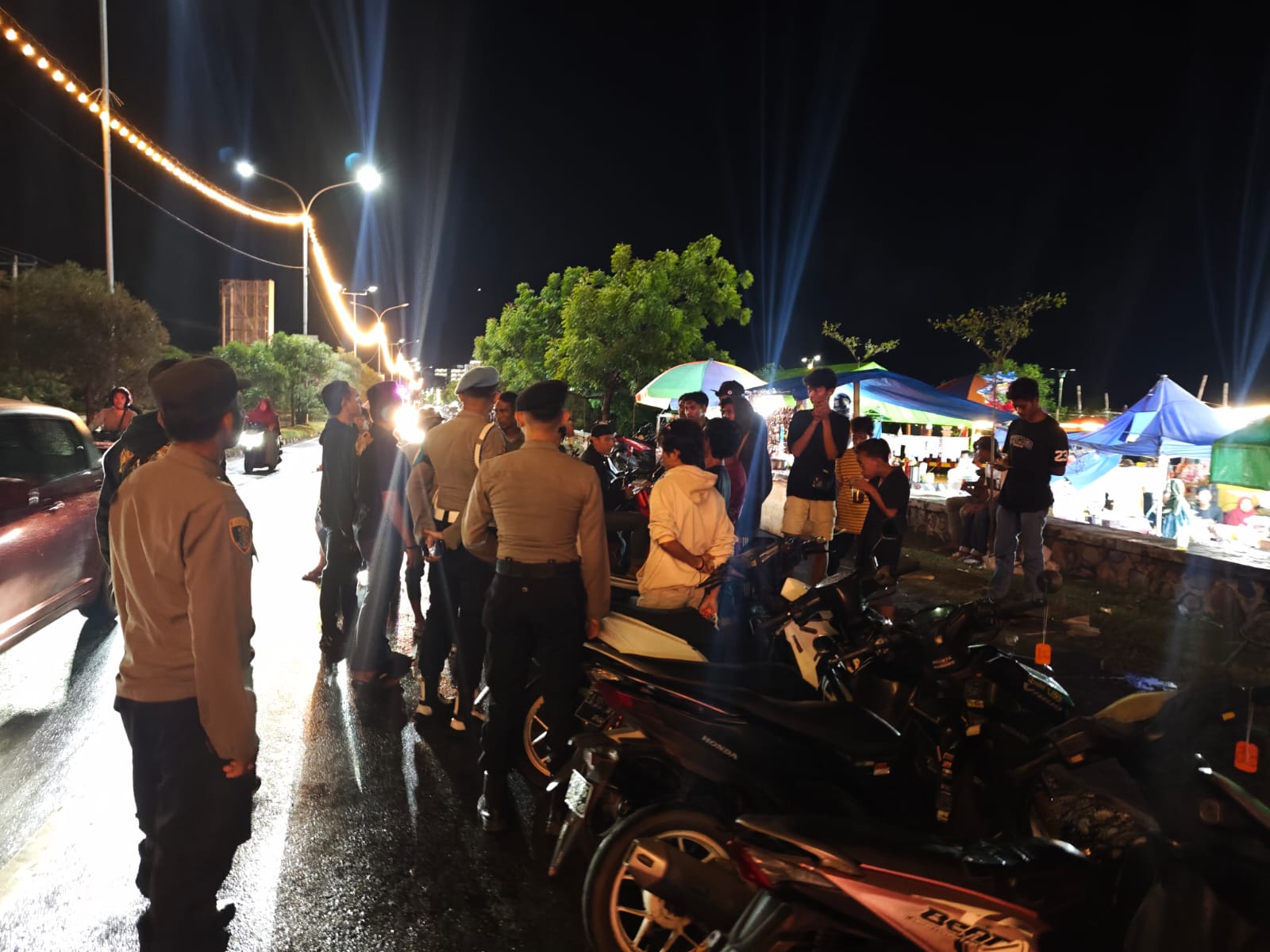 Kota Bima, NTB (22 Maret 2025) – Dalam rangka menjaga keamanan dan ketertiban masyarakat selama bulan suci Ramadhan, Satuan Samapta (Sat Samapta) Polres Bima Kota melaksanakan kegiatan Patroli Cipta Kondisi (Cipkon) gabungan menjelang dan pasca sahur. Patroli ini berlangsung pada Jumat (21/03/2025) mulai pukul 21.00 WITA di beberapa titik strategis, yakni Pasar Malam Dara, Kelurahan Santi, dan Pasar Raba.