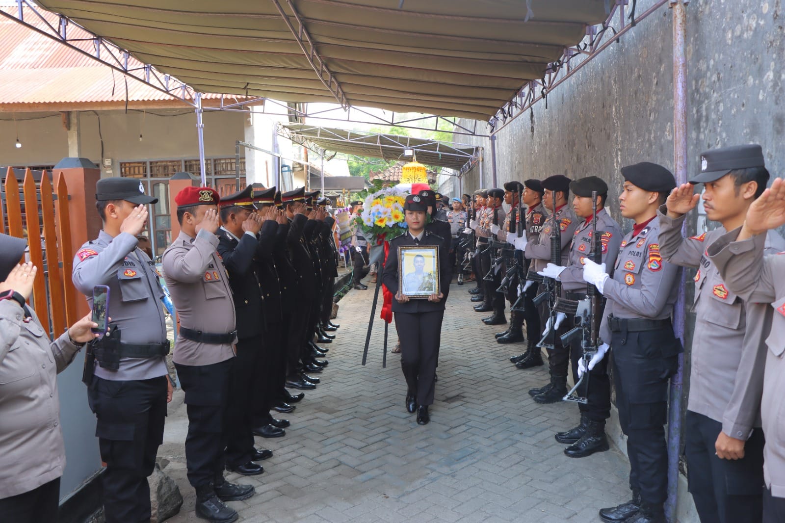 Sebelum dilaksanakan upacara Pemakaman Jenazah terlebih dahulu dilaksanakan Upacara penyerahan Jenazah di rumah duka dari keluarga kepada dinas Polri.