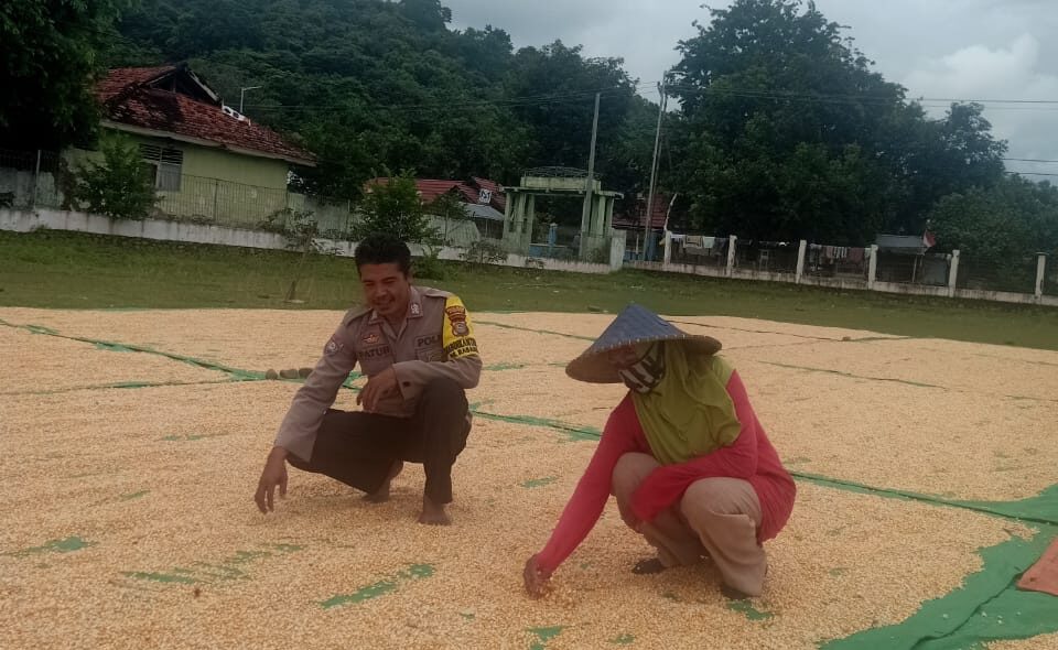 Dalam rangka mendukung Program Ketahanan Pangan Nasional Menuju Indonesia Emas 2024, Bhabinkamtibmas Desa Rasabou Polsek Hu’u, BRIPKA Fathurrahman, melaksanakan pemantauan panen raya jagung di lahan milik Sdr. Syarif yang berlokasi di Dusun Rasabou, Desa Rasabou, Kecamatan Hu’u, Kabupaten Dompu, pada Selasa (25/03/2025) siang.