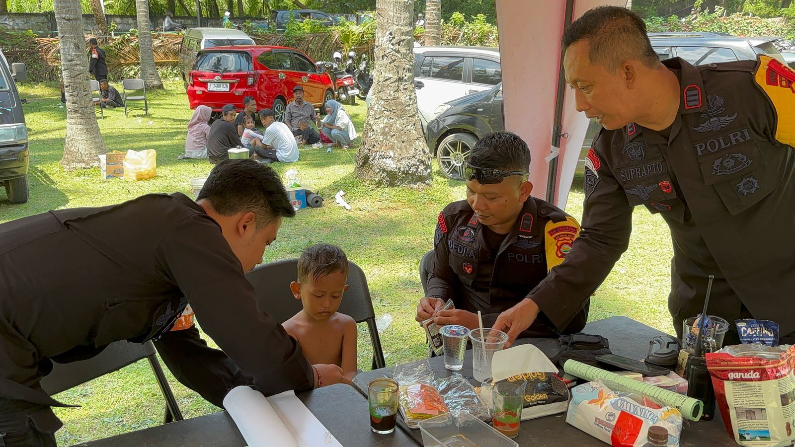 > “Saat melakukan pengamanan sekitar pukul 13.00 Wita, ada pengunjung yang datang ke Pospam membawa anak kecil usia sekitar 6 tahunan yang mencari orang tuanya sambil menangis,” ujar Kombes Kholid.