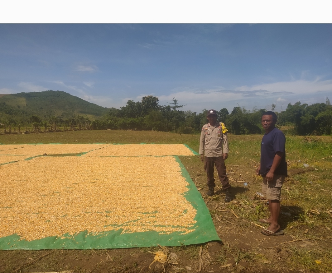 Upaya mewujudkan ketahanan pangan terus digencarkan, tak hanya oleh para petani, tapi juga oleh aparat keamanan yang hadir di tengah masyarakat. Seperti yang dilakukan AIPDA Agus Salim, Bhabinkamtibmas Desa Ranggo, Kecamatan Pajo, yang melaksanakan pemantauan langsung terhadap kegiatan penjemuran jagung milik warga binaannya, Bapak Made Wirawan, pada Senin (7/4/2025).