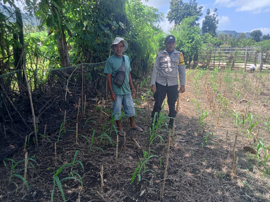 Dalam rangka mendukung Program Ketahanan Pangan Nasional menuju Indonesia Emas 2045, Bhabinkamtibmas Kelurahan Kandai 1, Aipda Khairil Muslim, melakukan pemantauan terhadap lahan pertanian milik warga binaannya, Ihwan, di Lingkungan Sambitangga, Kelurahan Kandai 1, Kecamatan Dompu, Kabupaten Dompu, Jumat (11/4/2025) pukul 14.00 WITA.