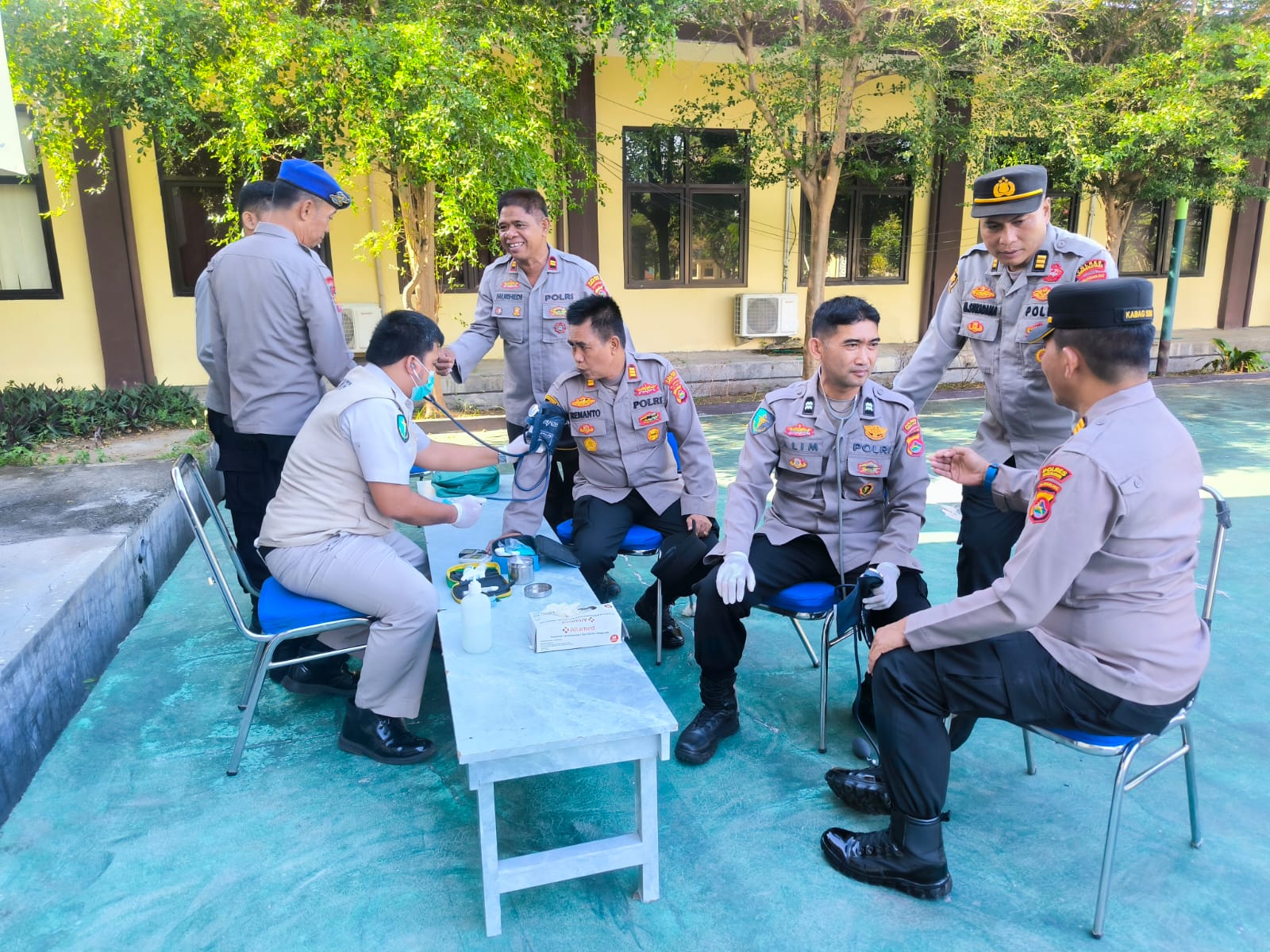 “Kegiatan screening kesehatan ini rutin kami laksanakan setiap Senin pagi setelah pelaksanaan apel pagi sehingga terhadap Personil terindikasi penyakit tertentu dapat melakukan screening ulang pada Minggu kedua dan menerima rawat jalan dari seksi Dokes”.