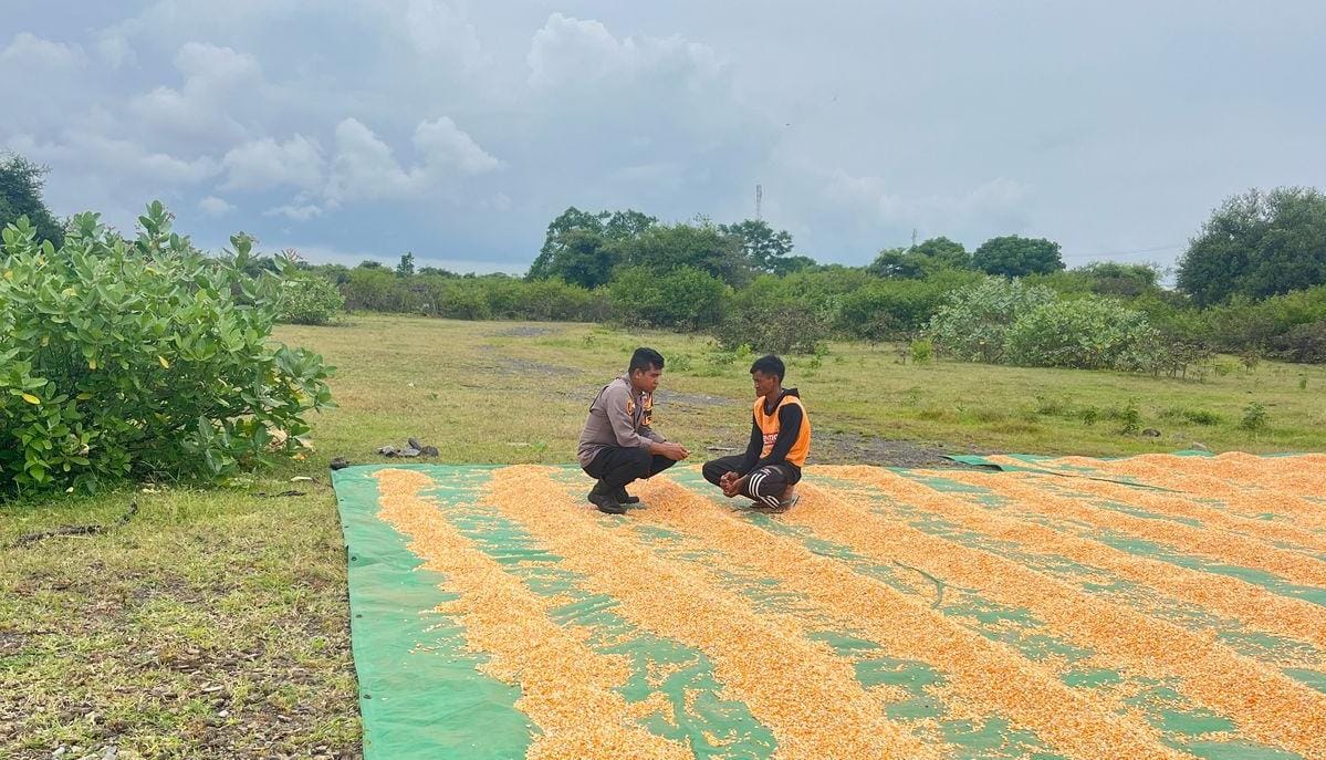 Pemantauan yang dilakukan oleh Bhabinkamtibmas Desa Kawinda To,i pada Kamis 24 April 2025 siang kemarin yakni warga yang sedang menjemur jagung usai panen.
