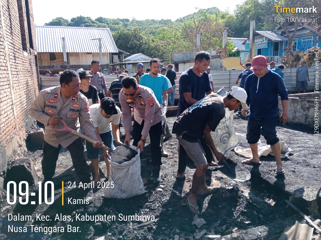 Sumbawa Besar-NTB, Semangat gotong royong di Dusun Dalam, Desa Dalam, Kecamatan Alas pasca musibah kebakaran yang melanda pada Rabu (23/4/2025) lalu.