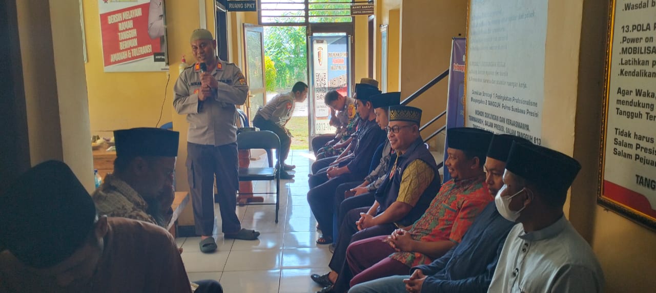 Sumbawa Besar-NTB, Suasana khidmat terasa di Mako Polsek Alas Barat pada Jumat pagi (25/4/2025). Sejak pukul 08.10 WITA hingga 09.00 WITA, berlangsung kegiatan doa bersama yang melibatkan tokoh agama dan masyarakat setempat.