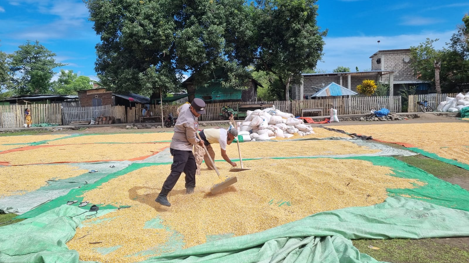 Namun, pemantauan di lapangan menunjukkan bahwa kualitas jagung belum maksimal akibat curah hujan tinggi yang menyebabkan banyak tanaman terserang virus busuk batang. Meski begitu, proses penjemuran tetap berjalan baik.