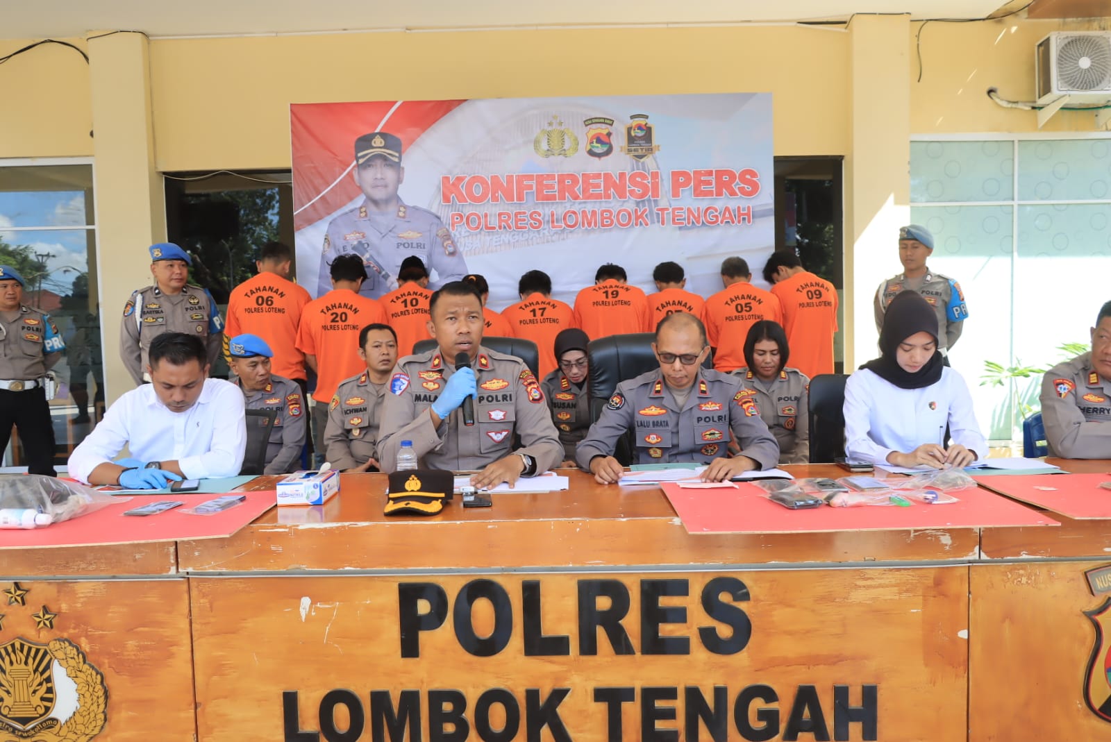 ”Dari sembilan tersangka yang kita amankan salah satunya perempuan terjerat yang terjerat kasus Narkotika,” kata Wakapolres Lombok Tengah, Kompol Imam Maladi, S.T., S.I.K., M.H., saat pimpin konferensi pers di Mapolres Lombok Tengah, Senin (28/4).