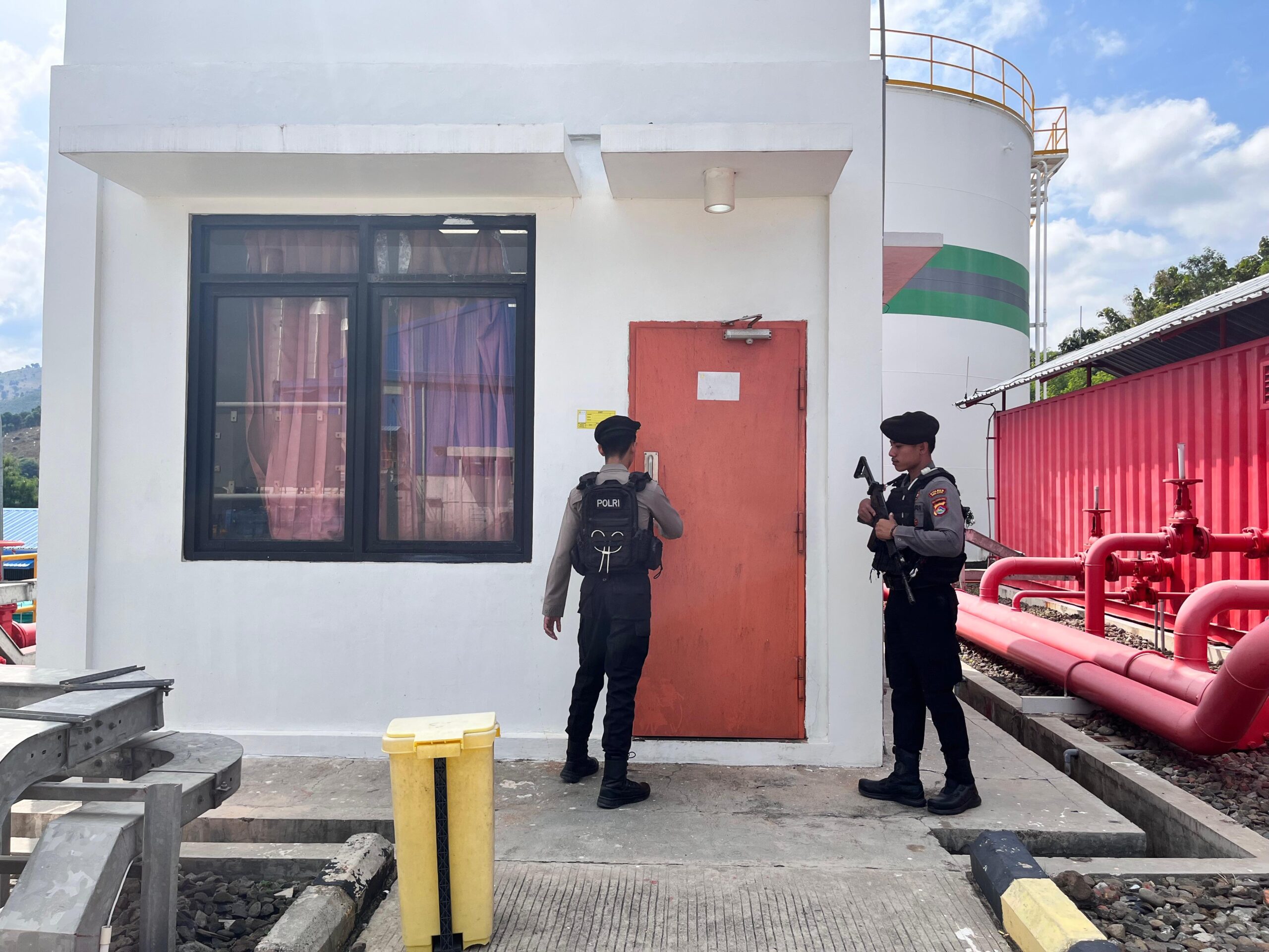 “Anggota Unit Obvit Sat Samapta Polres Bima Kota melaksanakan pengamanan dan patroli di sekitar area PLTMG Bonto Bima, termasuk kantor BSDG, area mesin filter udara, dan gardu penghantar listrik,” terang Ipda Baiq Fitria.