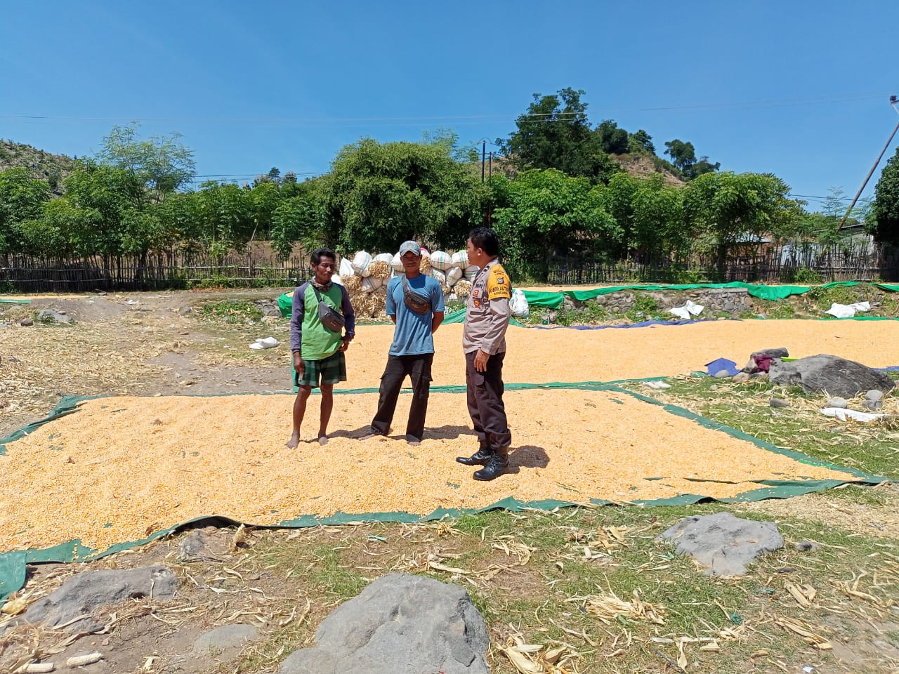 Pada Kamis (1/5/2025) sekitar pukul 15.40 WITA, Bhabinkamtibmas Desa Daha, Polsek Hu’u, BRIPKA Adi Setiadi melaksanakan pemantauan terhadap kegiatan warga binaan yang sedang menjemur jagung hasil panen di Dusun Tolorodi, Desa Daha, Kecamatan Hu’u, Kabupaten Dompu. Kegiatan ini merupakan bagian dari upaya mendukung Program Ketahanan Pangan Nasional menuju Indonesia Emas 2045.