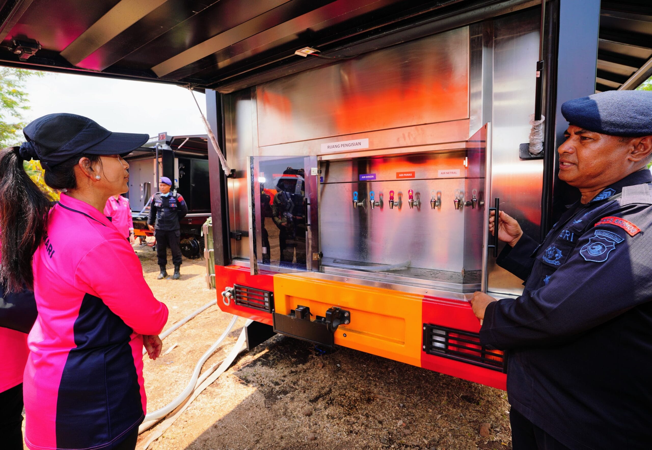 Kendaraan water treatment yang dioperasikan oleh Brimob Polda NTT terus memasok air bersih ke posko-posko pengungsian untuk memastikan ketersediaan air minum yang layak bagi para pengungsi. Kehadiran Ketua Umum Bhayangkari dan para pejabat Polri ini diharapkan dapat memberikan semangat dan kepercayaan diri kepada para pengungsi bahwa mereka tidak sendirian dalam menghadapi masa-masa sulit akibat erupsi Gunung Lewotobi.