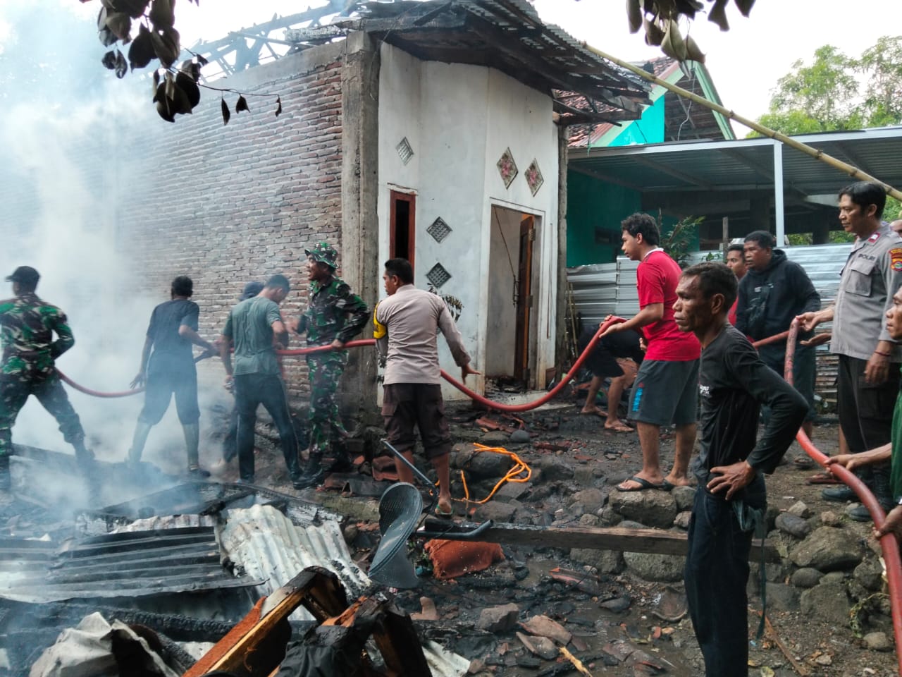 Petugas Pemadam Kebakaran Kecamatan Ambalawi tiba di lokasi sekitar pukul 17.30 WITA. Proses pemadaman api berlangsung intens dibantu oleh personel Polsek Ambalawi serta warga sekitar. Berkat kerja sama tersebut, api berhasil dijinakkan dan tidak merembet ke rumah warga lainnya.