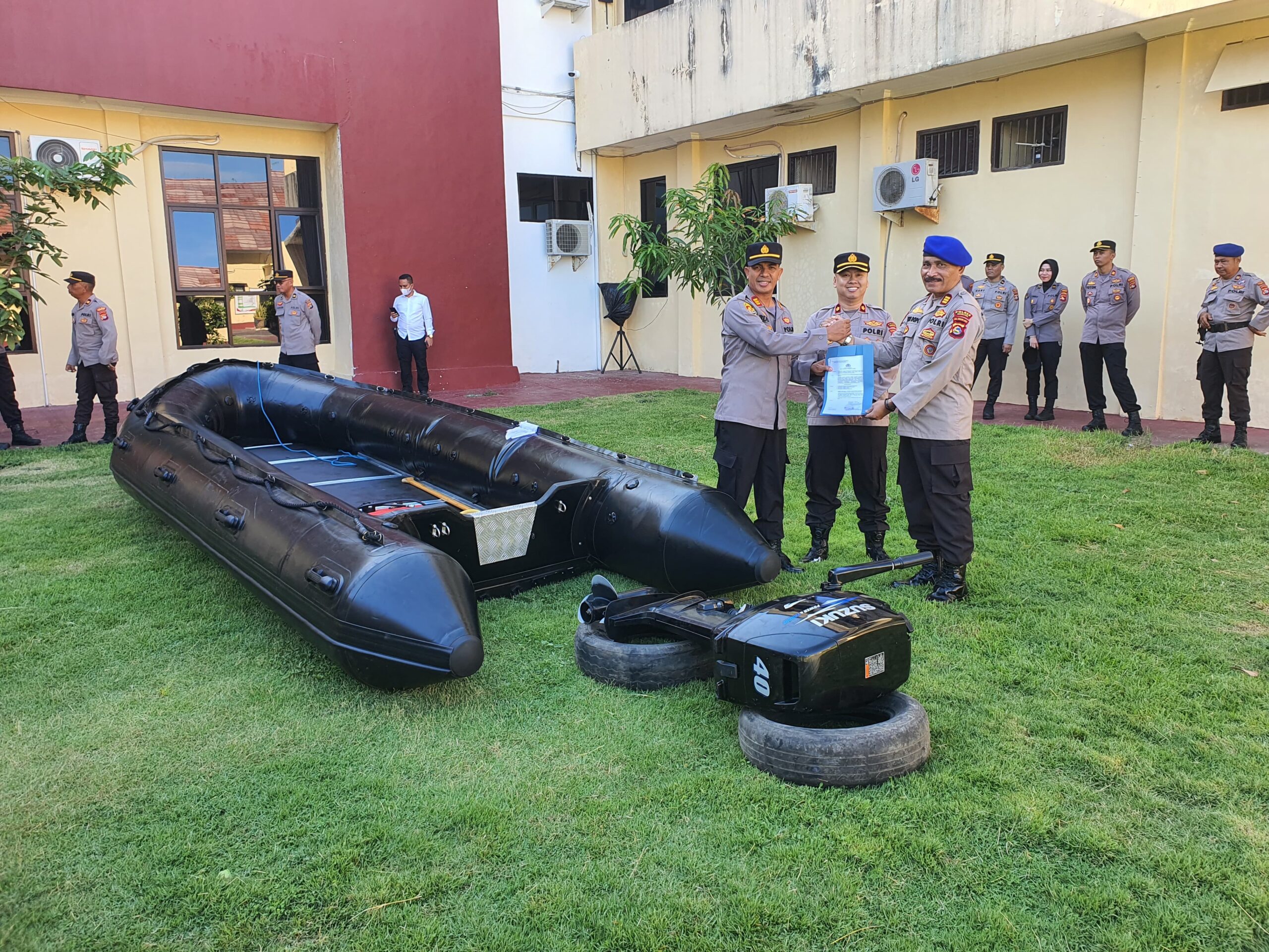 Kasat Polairud Polres Sumbawa AKP Antonius Dopo, S.A.P secara langsung menyerahkan bantuan operasional tersebut kepada Waka Polres Sumbawa Kompol Ricky Yuhanda, S.E., S.I.K., M.M., dan Kabag Logistik Polres Sumbawa AKP Ruslan. Penyerahan ini bertujuan agar perahu karet beserta kelengkapannya dapat segera diinventarisir oleh Bagian Logistik Polres Sumbawa.