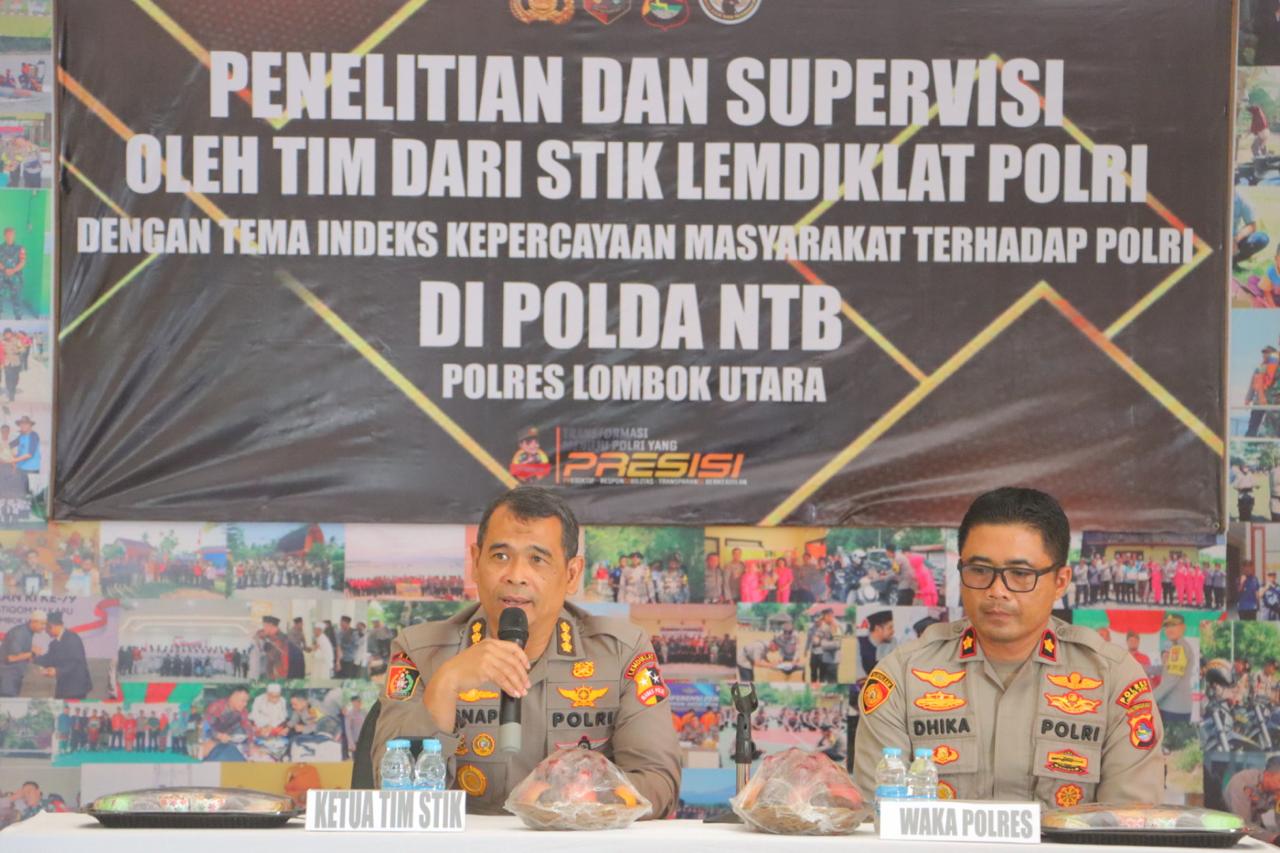 Dalam kegiatan ini Kapolres Lombok Utara AKBP Agus Purwanta S.I.K. Dalam hal ini diwakili oleh Wakapolres Lombok Utara Kompol Adhika, G.W. S.E.,M.Si., mengucapkan terima kasih kepada Tim Peneliti dari PPIK, yang telah meluangkan waktunya untuk hadir di Polres Lombok Utara, untuk melakukan penelitian dan supervisi atas kepercayaan masyarakat terhadap kinerja Institusi Polri, khususnya di wilayah hukum Polres Lombok Utara, dan kami berharap dengan adanya kegiatan ini dapat membuahkan hasil yang kita harapkan dalam memberikan pelayanan kepada masyarakat sehingga kepercayaan masyarakat terhadap Polri dapat kita jaga dengan baik , ungkapnya.