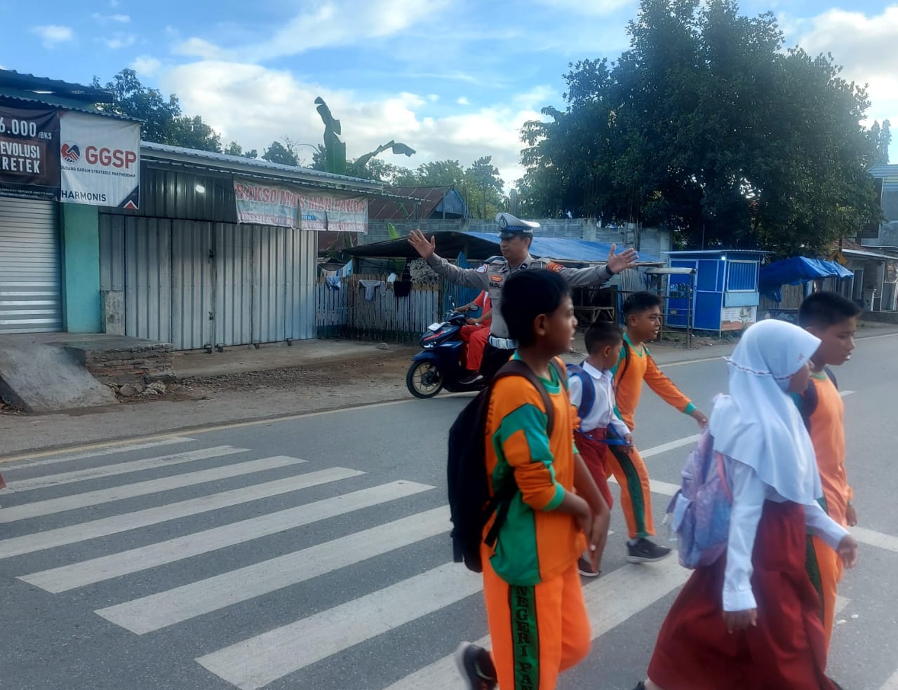 Salah satu contohnya, dengan menciptakan keamanan dan kenyamanan kepada para siswa-siswi di Depan SDN Panda, saat akan menyeberangi jalan raya menuju sekolah.