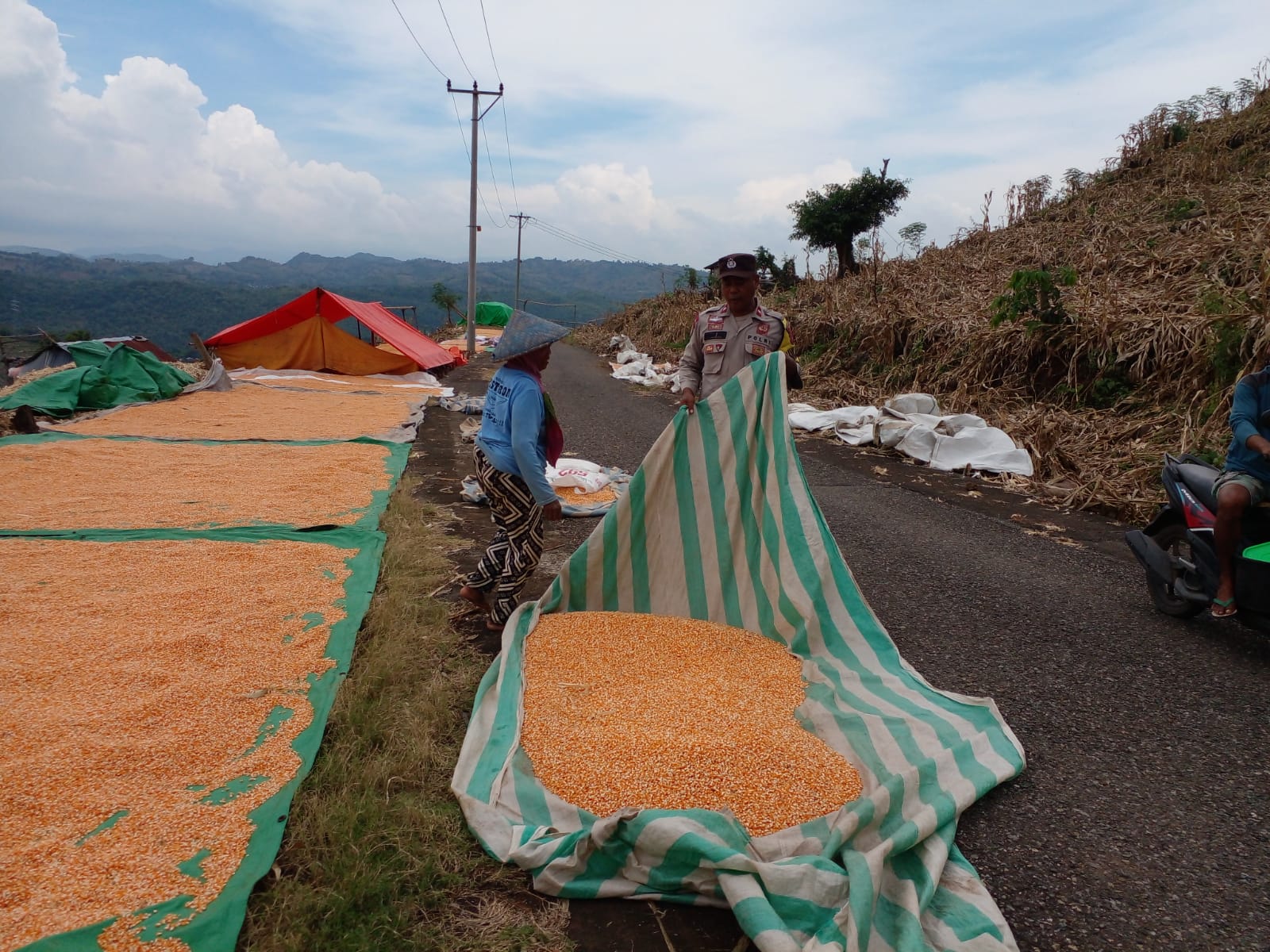 Kapolres Bima Kota AKBP Didik Putra Kuncoro, S.I.K., M.Si. melalui Kasi Humas Ipda Baiq Fitria Ningsih menjelaskan bahwa Bhabinkamtibmas Kelurahan Nungga, Polsek Rasanae Timur, Aipda Herman, terjun langsung membantu warga dalam proses pengeringan jagung di lahan pertanian So Doro Kadara, Kelurahan Nungga, Kecamatan Rasanae Timur, Kota Bima.