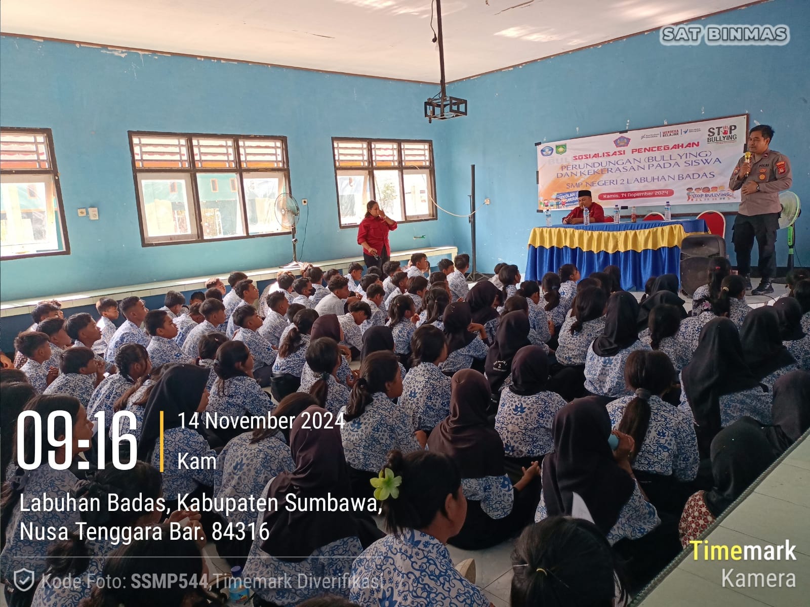 Sumbawa Besar-NTB, Sat Binmas Polres Sumbawa melaksanakan kegiatan pembinaan dan penyuluhan (binluh) kepada para siswa di SMPN 2 Labuan Sumbawa, Kamis (14/11/24) pagi.