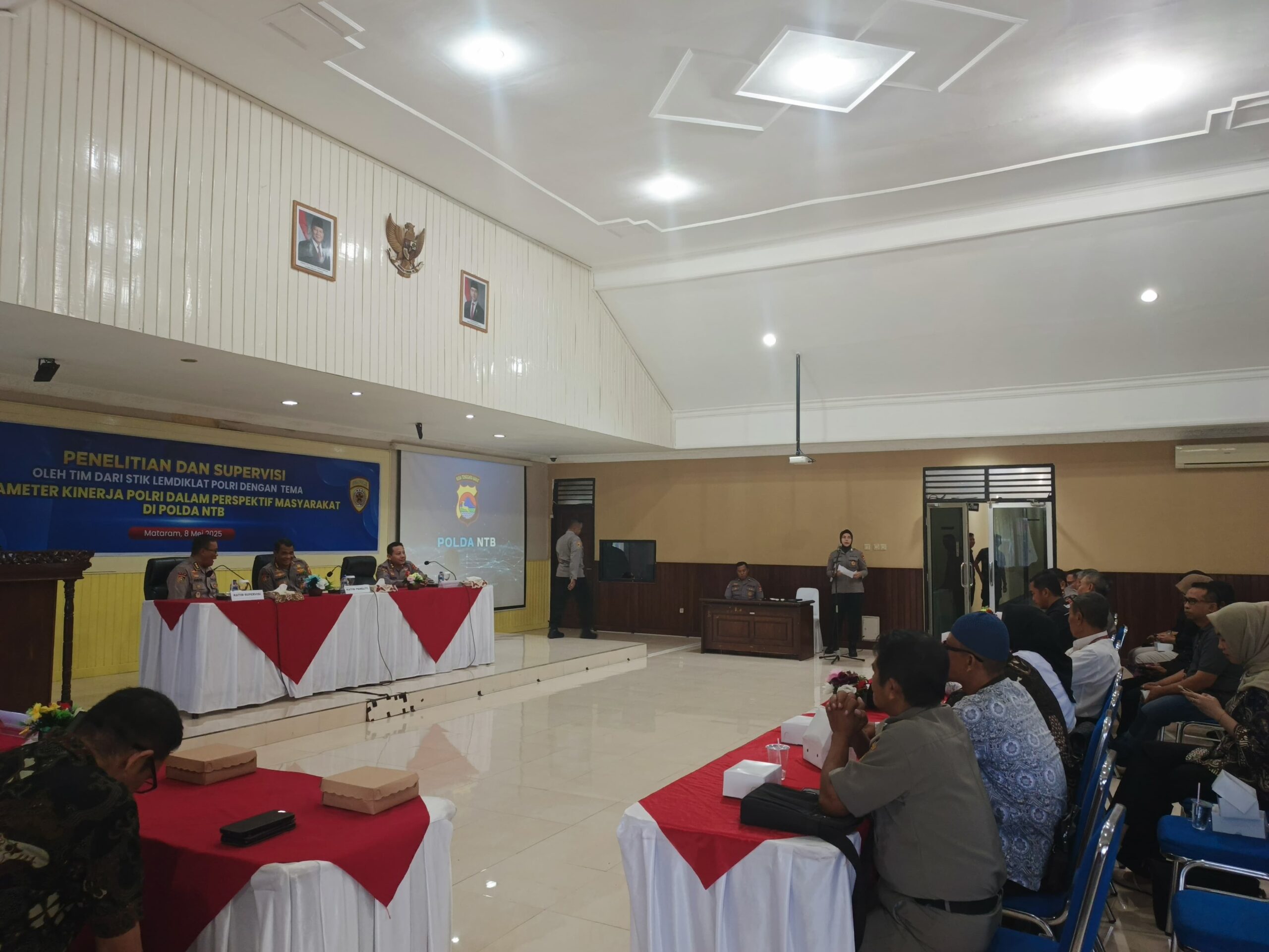 Kegiatan yang berlangsung di Gedung Rupatama Polda NTB ini bertujuan untuk melaksanakan penelitian dan survei terkait tingkat kepercayaan publik terhadap Polri berdasarkan Parameter kinerja Polri dalam perspektif masyarakat di Polda NTB.