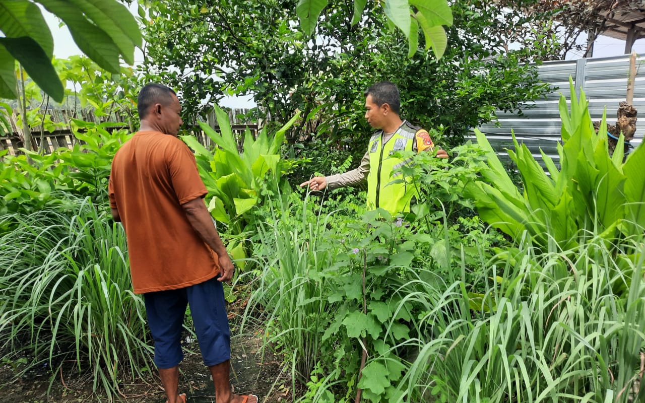 Selain memantau langsung kondisi tanaman, Bhabinkamtibmas juga menyampaikan pesan-pesan kamtibmas, mengimbau warga agar terus menjaga keamanan lingkungan, serta mendorong partisipasi aktif dalam menciptakan suasana yang kondusif.
