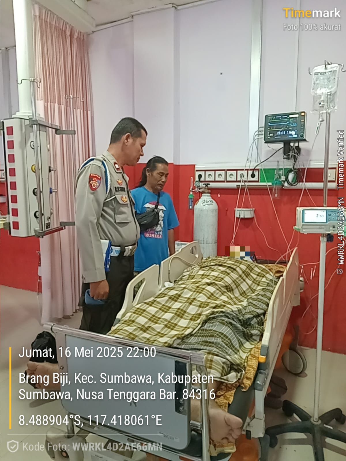 Sekitar pukul 22.00 Wita, Personel Polsek Sumbawa bergerak cepat menuju TKP setelah menerima laporan tersebut untuk melakukan pengecekan. Petugas mendapati korban telah berada di ruang Unit Gawat Darurat (UGD) Rumah Sakit Umum Daerah (RSUD) Sumbawa dalam kondisi belum sadarkan diri dan sedang menjalani perawatan intensif.