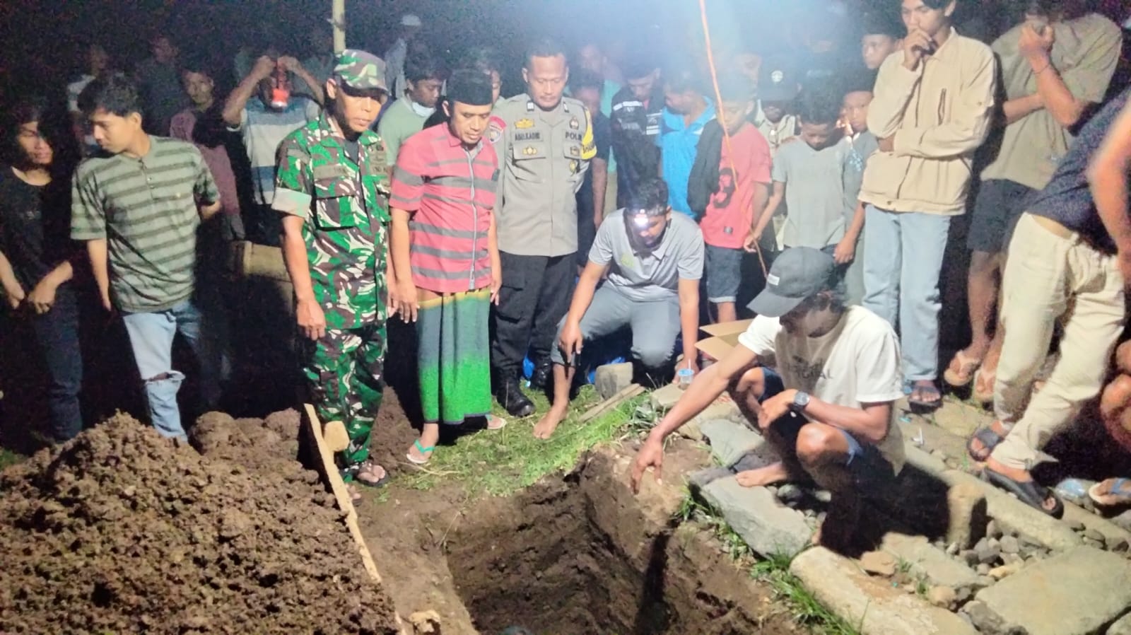 Sumbawa Barat, NTB – Minggu malam, 18 Mei 2025, pukul 20.00 WITA, Bhabinkamtibmas Desa Seloto, Aiptu Abdul Kadir, menghadiri prosesi pemakaman korban gantung diri di Tempat Pemakaman Umum (TPU) Desa Seloto, Kecamatan Taliwang, Kabupaten Sumbawa Barat. Kehadiran aparat kepolisian ini menjadi wujud nyata kepedulian Polri terhadap masyarakat yang sedang berduka.