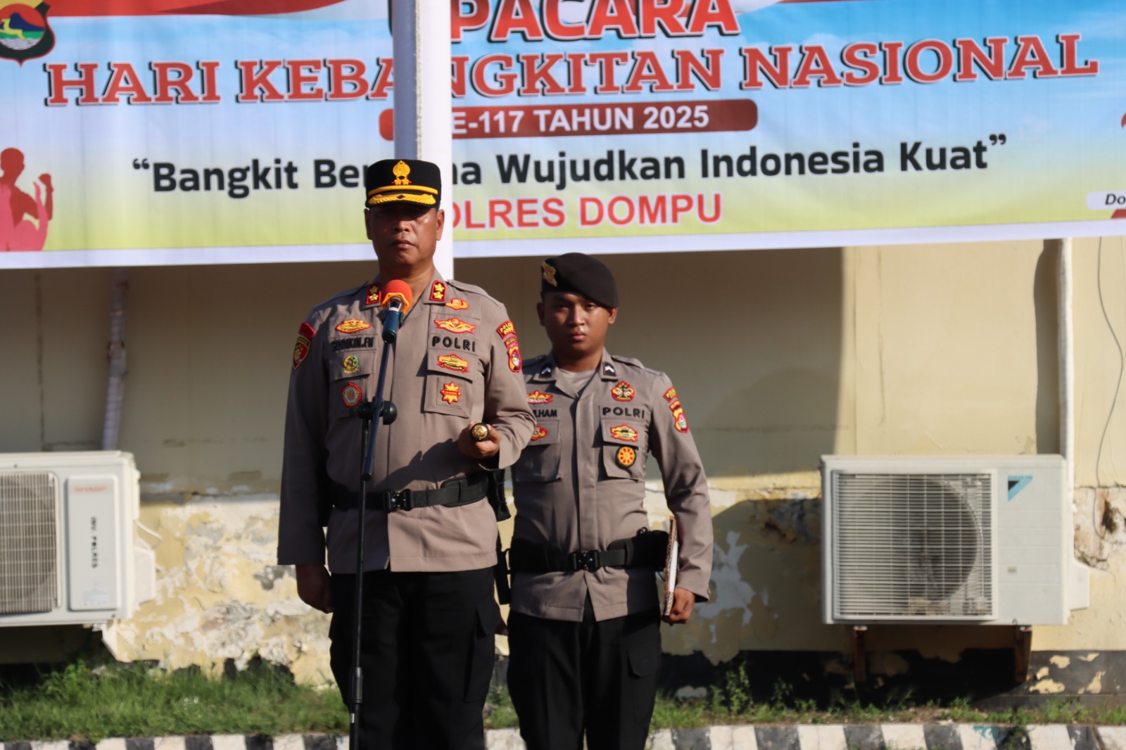 Kepolisian Resor Dompu menggelar upacara memperingati Hari Kebangkitan Nasional (Harkitnas) ke-116 tahun 2025 yang berlangsung khidmat di halaman Mako Polres Dompu pada Senin pagi, 20 Mei 2025. Upacara tersebut dipimpin langsung oleh Kapolres Dompu AKBP Sodikin Fahrojin Nur, S.I.K., dan diikuti oleh Wakapolres, para Kabag, Kasat, Kasi, perwira staf, serta seluruh anggota dan ASN Polres Dompu.