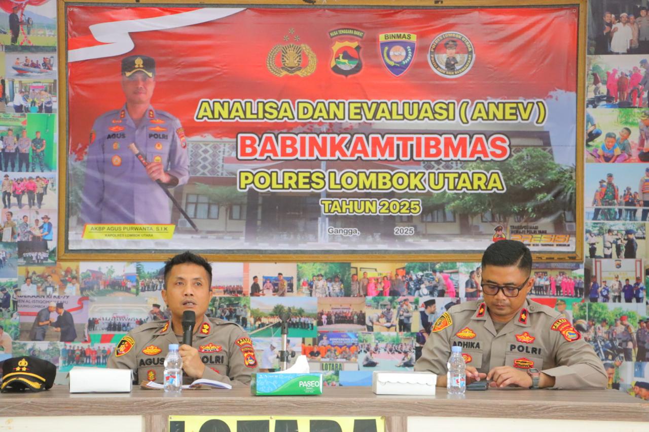 LOMBOK UTARA -Kapolres Lombok Utara AKBP Agus Purwanta S.I.K. ya g di damping Wakapolres Lombok Utara Kompol Adhika,G.W.,S.E.,M.Si. serta beberapa Pejabat Utama Polres Lombok Utara melakukan kegiatan Monitoring dan Evaluasi (Monev) dengan Kanit Binmas Panit Binmas dan Bhabinkamtibmas Polsek jajaran Polres Lombok Utara, yang bertempat di Aula Sarja Arya Racana Polres Lombok Utara, Rabu, 21/5/2025.