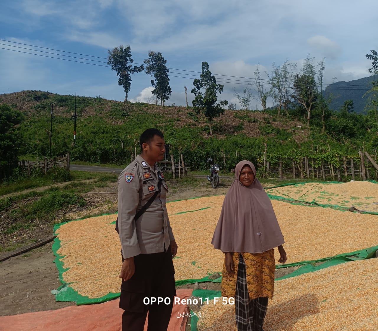 Kegiatan tersebut berlangsung sejak pukul 10.00 WITA di So Laria, Desa Adu, Kecamatan Hu’u, Kabupaten Dompu. Adapun warga yang dipantau adalah Sdri. Suharti yang tengah menjemur hasil panen jagungnya.