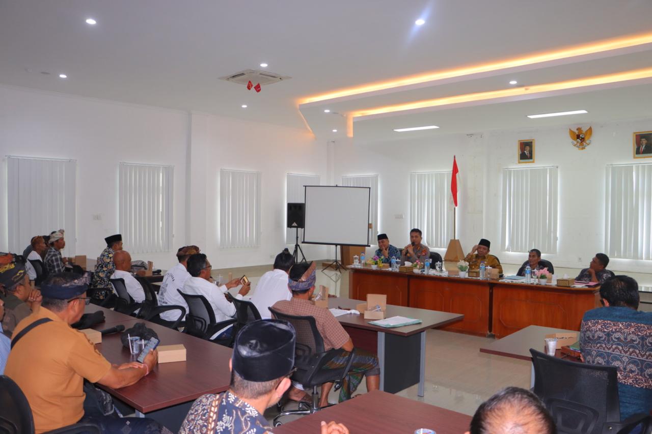 Lombok Utara – Kapolres Lombok Utara AKBP Agus Purwanta, S.I.K., menghadiri kegiatan hearing terkait permasalahan pembangunan Pura Awan Rinjani Parwata yang digelar di Kantor Bupati Lombok Utara. Kegiatan ini membahas polemik pembangunan pura yang terletak di Dusun Pegadungan, Desa Sambik Elen, Kecamatan Bayan, yang saat ini masih menyisakan persoalan legalitas lahan dan pemenuhan syarat administratif pendirian tempat ibadah, Kamis (22/5).