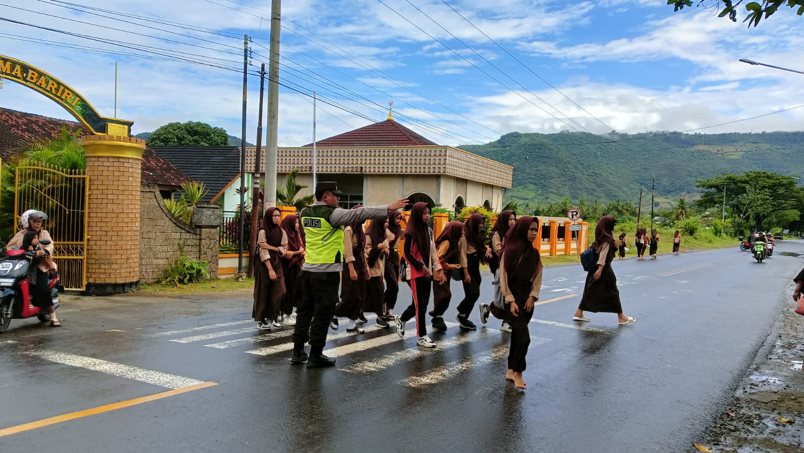 Kegiatan patroli ini difokuskan di depan SMPN 1 Seteluk, sebuah kawasan yang dikenal padat lalu lintas karena menjadi akses utama menuju ibu kota kabupaten, Taliwang. Langkah ini dilakukan guna memberikan rasa aman bagi para siswa yang hendak pulang sekolah serta masyarakat yang melintas di area tersebut.