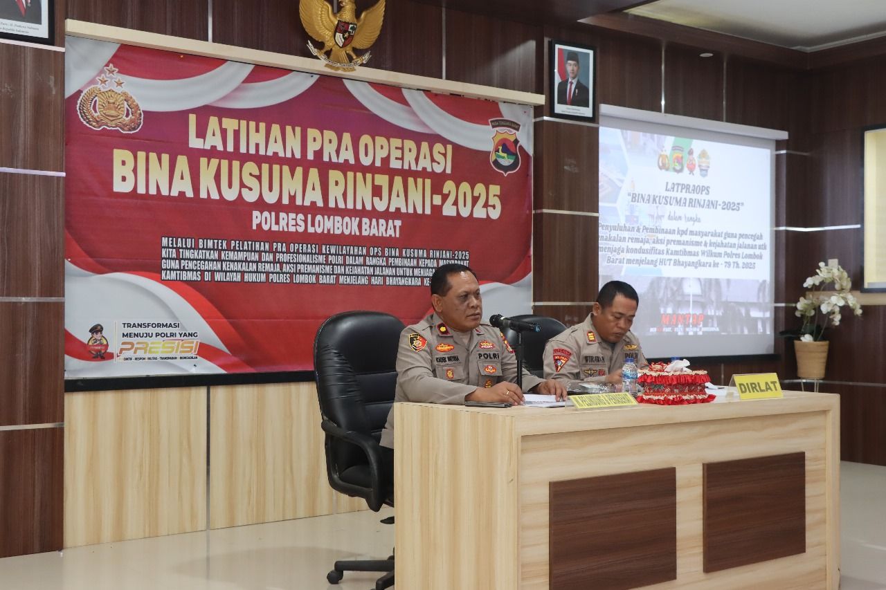 Lombok Barat, NTB – Kepolisian Resor (Polres) Lombok Barat menggelar Latihan Pra-Operasi (Latpraops) Bina Kusuma Rinjani 2025, Kamis (12/6/2025). Bertempat di Aula Patriatama Polres Lombok Barat, kegiatan ini berfokus pada penyuluhan dan pembinaan kepada Masyarakat.