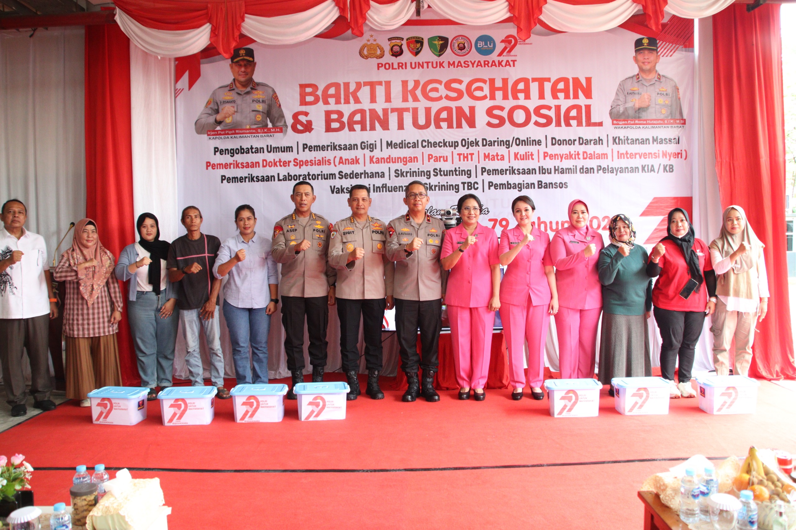 Kegiatan dipimpin langsung oleh Wakapolda Kalbar didampingi oleh Wakil Ketua Bhayangkari Daerah Kalbar serta Pejabat Utama Polda Kalbar. Bhakti kesehatan ini diikuti oleh personel Polda Kalbar, tenaga kesehatan, perwakilan masyarakat, serta tamu undangan.