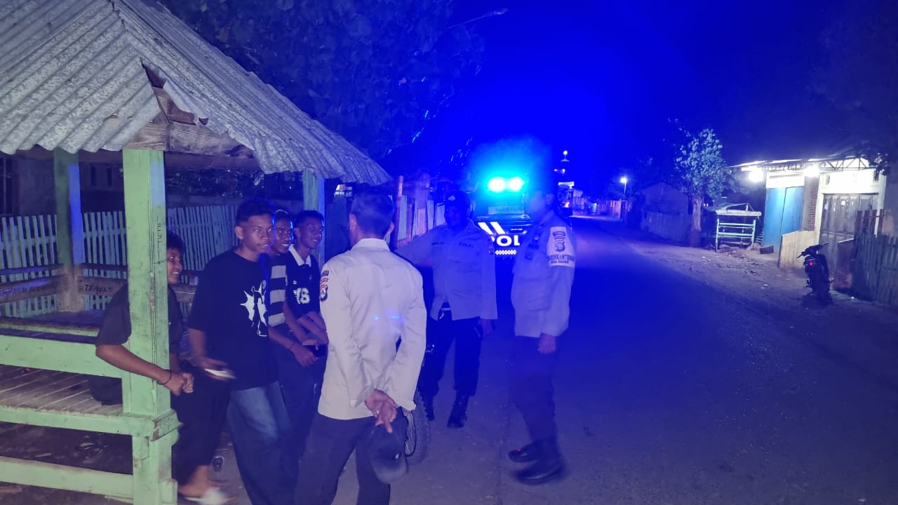 Pukul 21.00 WITA Patroli berlanjut ke Desa Malaju, Kecamatan Kilo. Petugas memberikan edukasi kepada masyarakat yang menikmati hiburan malam agar tidak terlibat dalam keributan, tetap waspada terhadap pencurian, serta menjaga ketenangan wilayah.