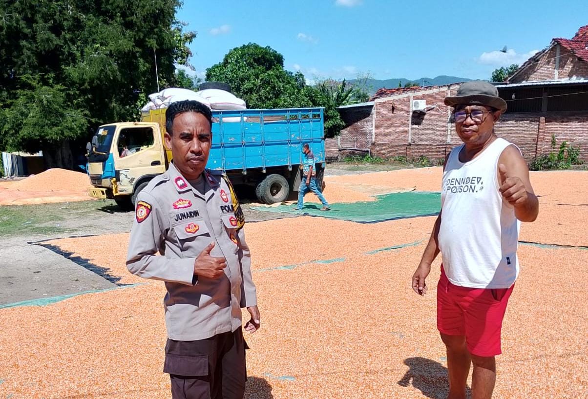 Bhabinkamtibmas Polsek Bolo Polres Bima Polda NTB Aiptu Junaidin melaksanakan peninjauan dan pemantauan pengeringan jagung warga.