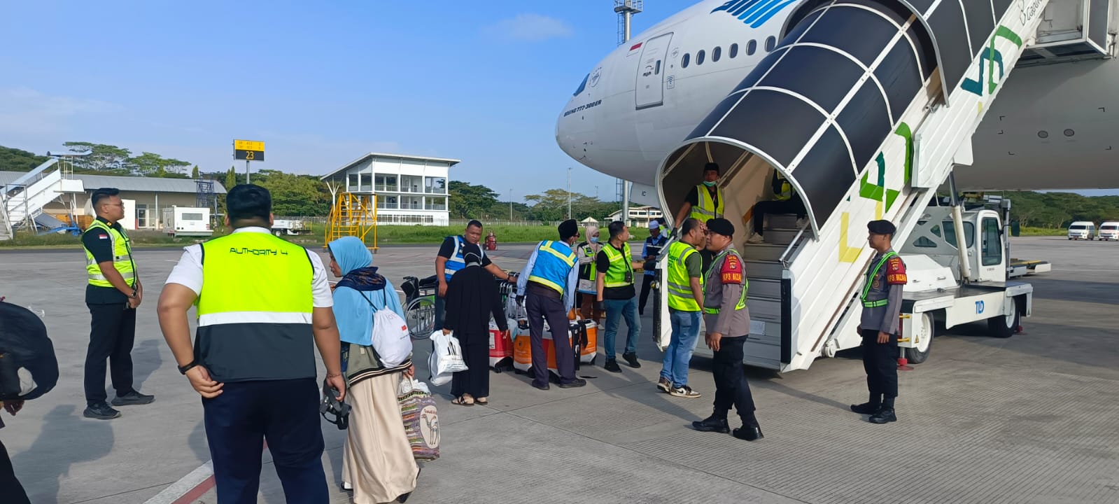 Sebanyak 388 jamaah haji kloter II tiba di Bandara menggunakan pesawat udara Garuda Indonesia. Dari jumlah tersebut, 187 merupakan jamaah haji laki-laki, 193 jamaah perempuan, serta 8 orang petugas haji yang turut mendampingi.