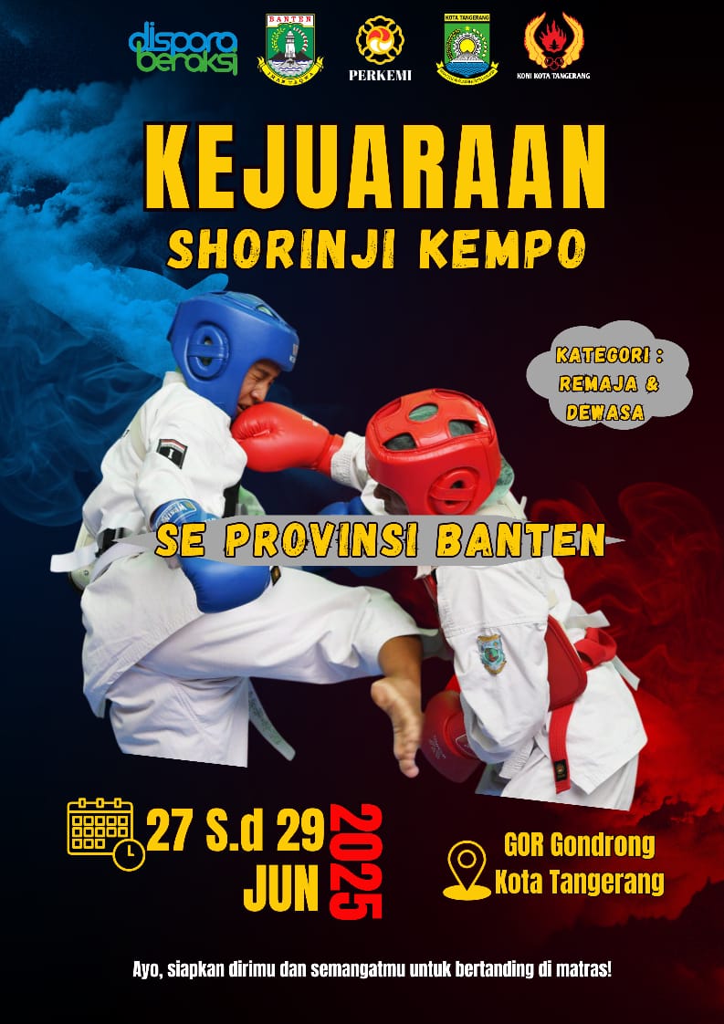 Tangerang – GOR Gondrong Kota Tangerang akan menjadi saksi semangat dan sportivitas para atlet beladiri dalam Kejuaraan Persaudaraan Beladiri Shorinji Kempo Se-Provinsi Banten 2025, yang akan digelar pada 27–28 Juni 2025.