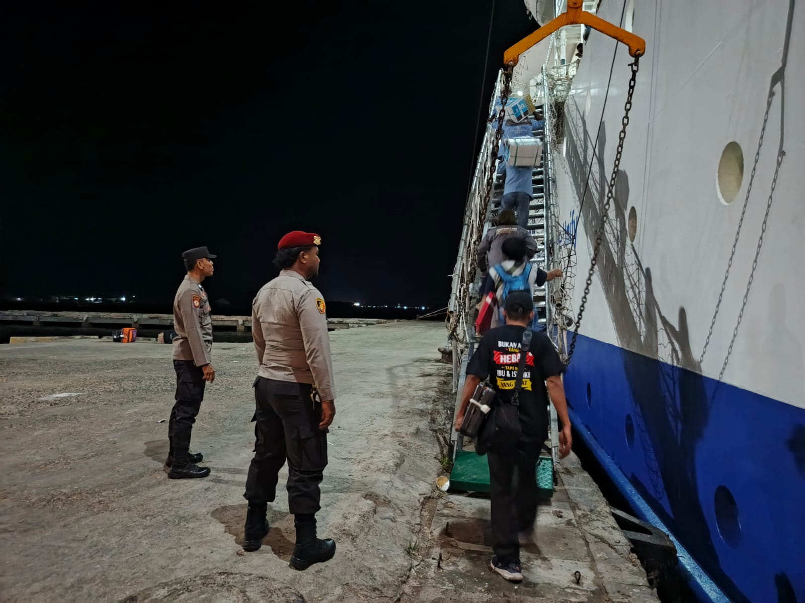 Kota Bima, NTB (24 Juni 2025) – Guna memastikan kelancaran dan keamanan proses embarkasi serta debarkasi penumpang, Polsek Kawasan Pelabuhan Laut Bima melaksanakan pengamanan terhadap aktivitas kapal KM. Tilongkabila yang sandar di Pelabuhan Bima pada Selasa, 24 Juni 2025 pukul 04.15 WITA.